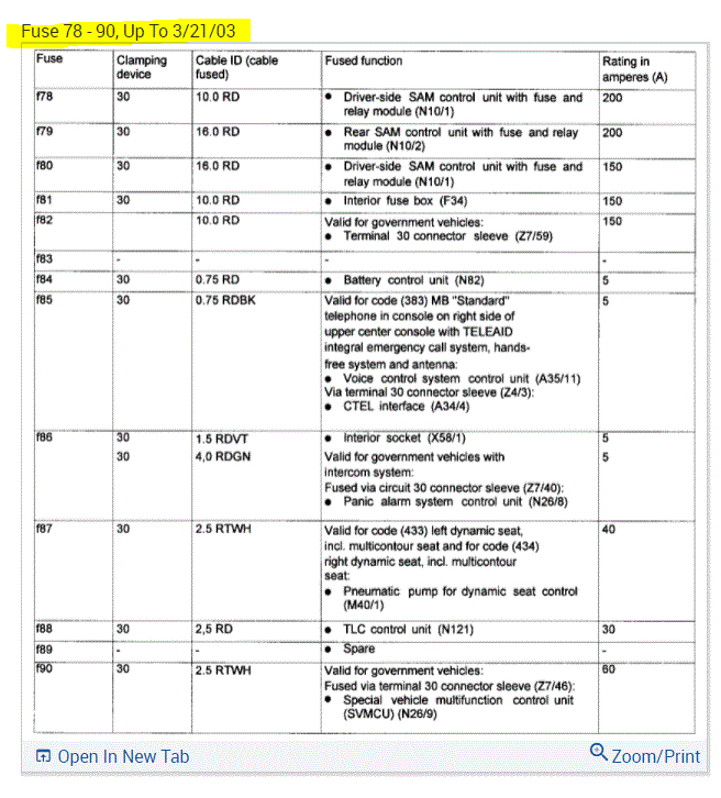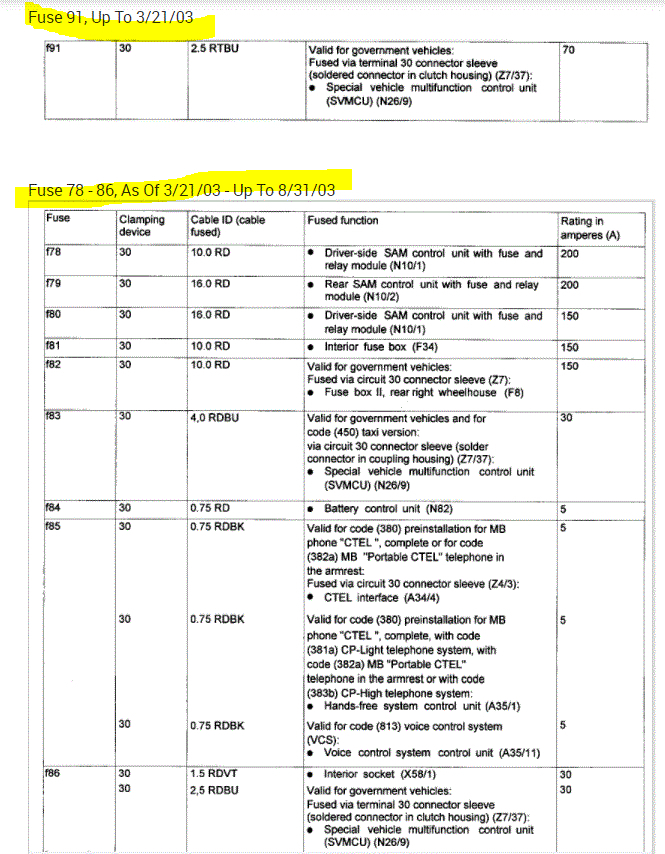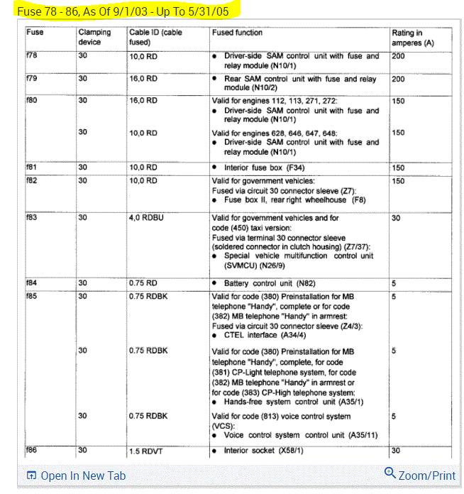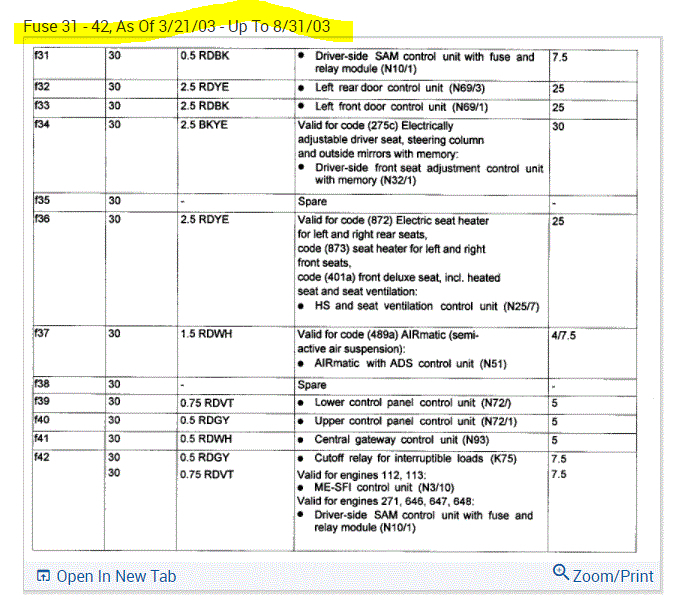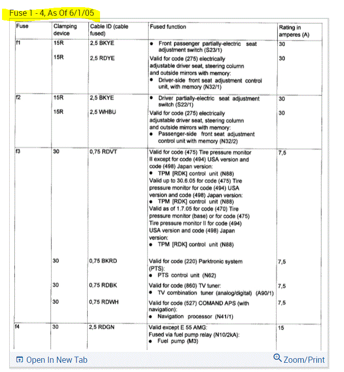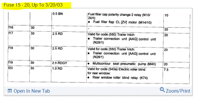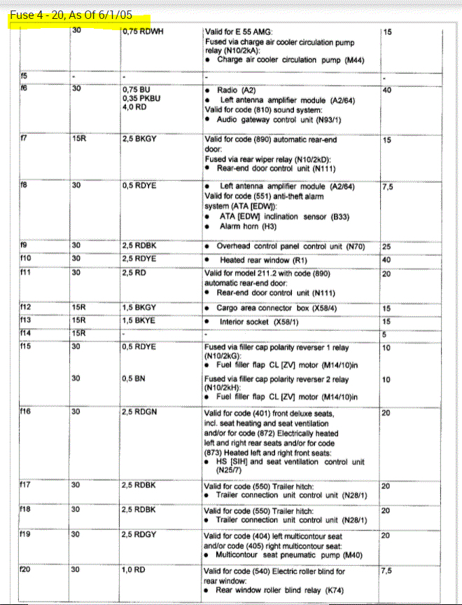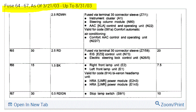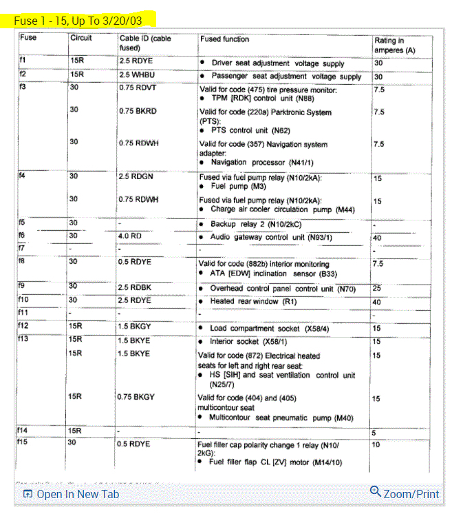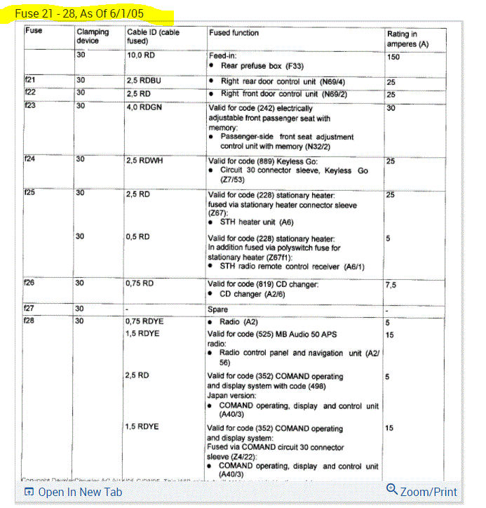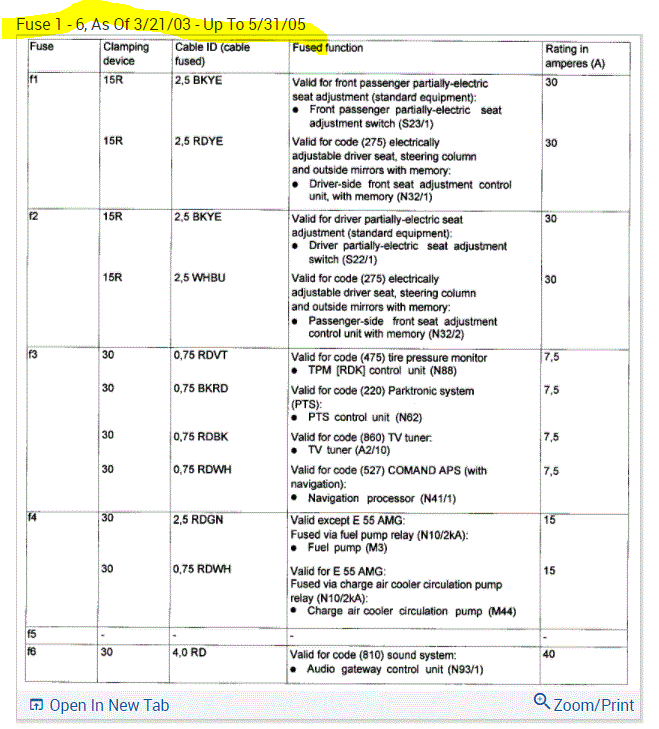 If you look at the pics below, they provide the fuse information you requested.