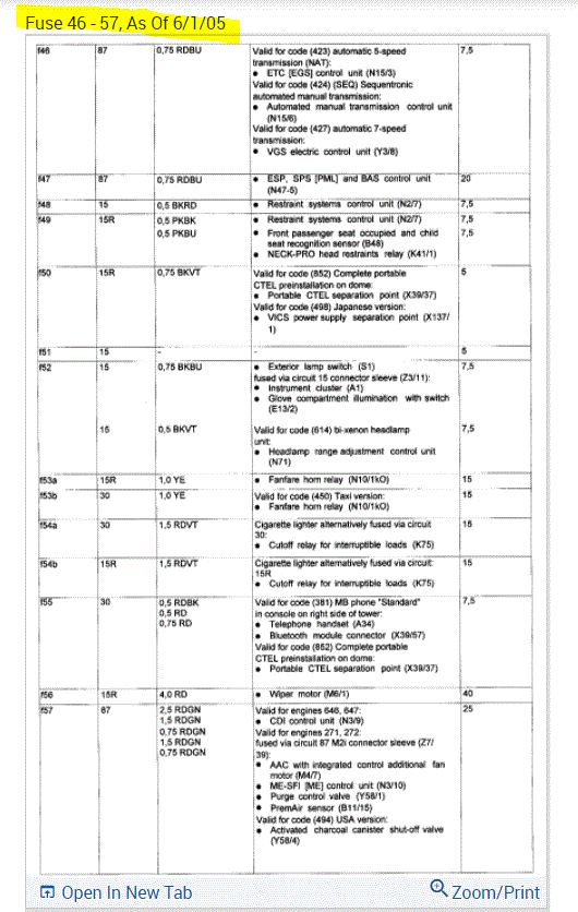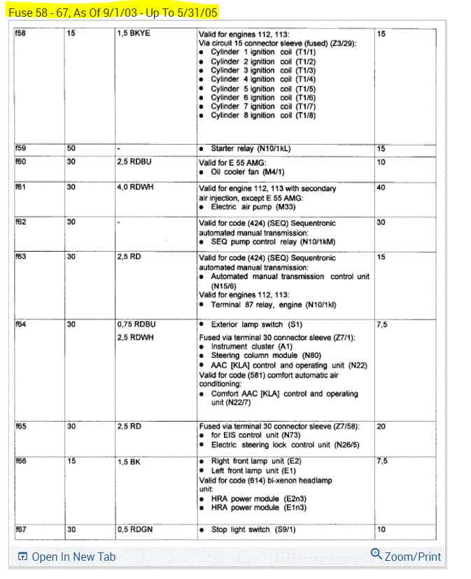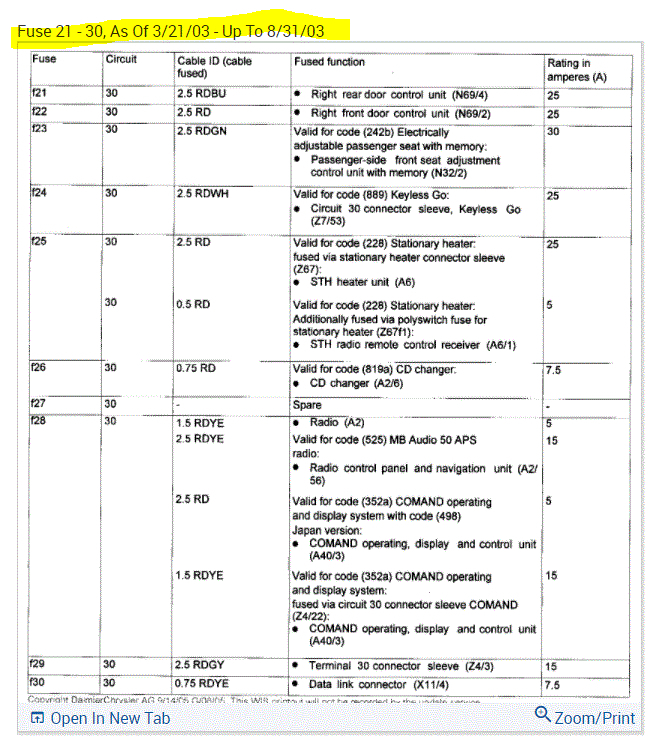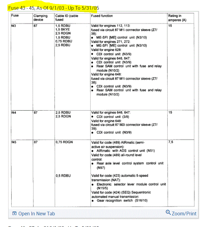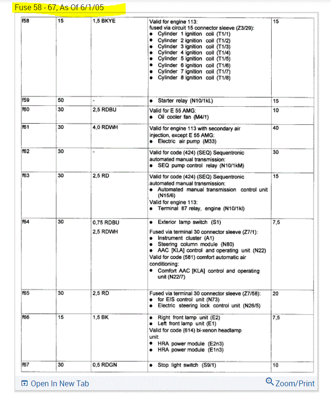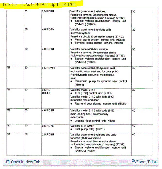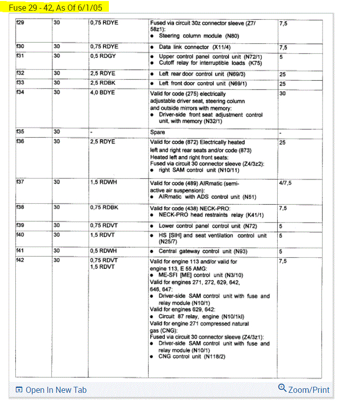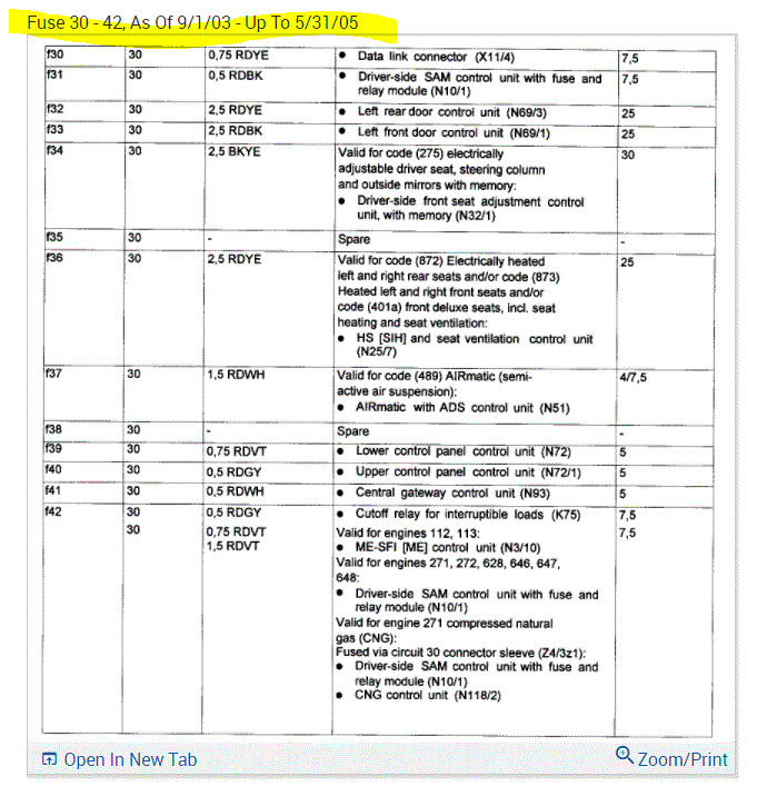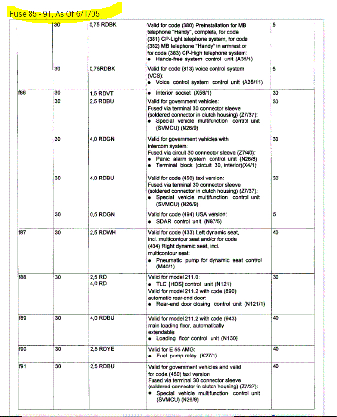If you look at the pics below, they provide the fuse information you requested.