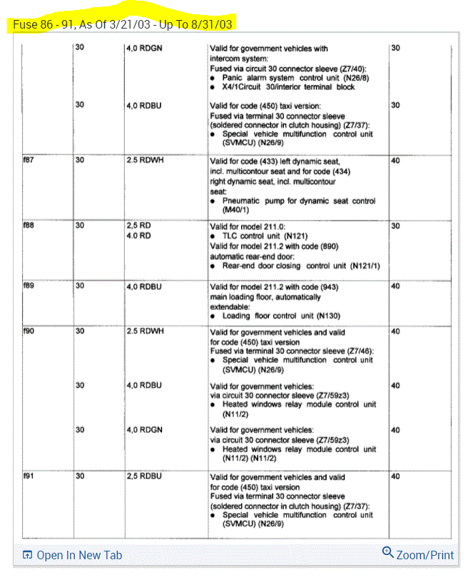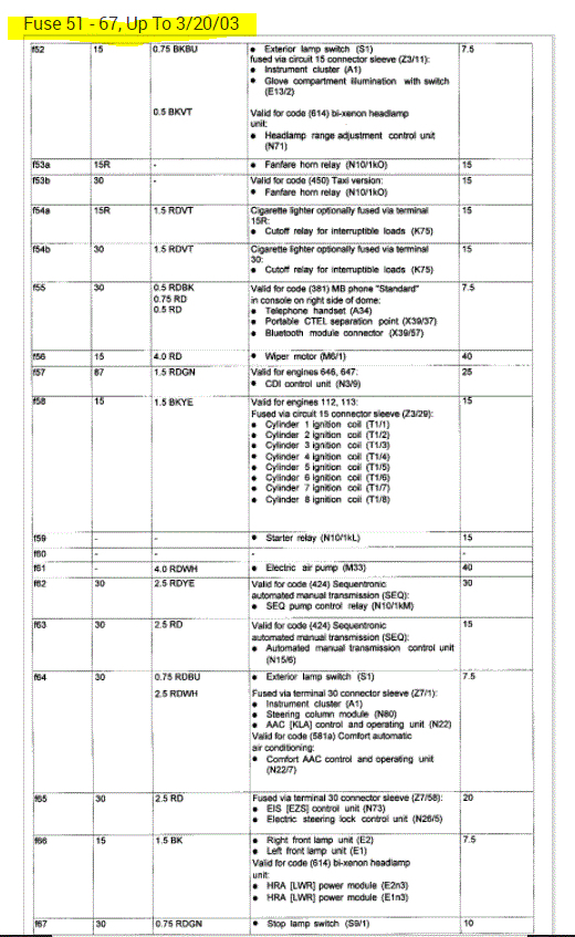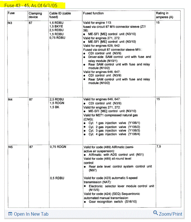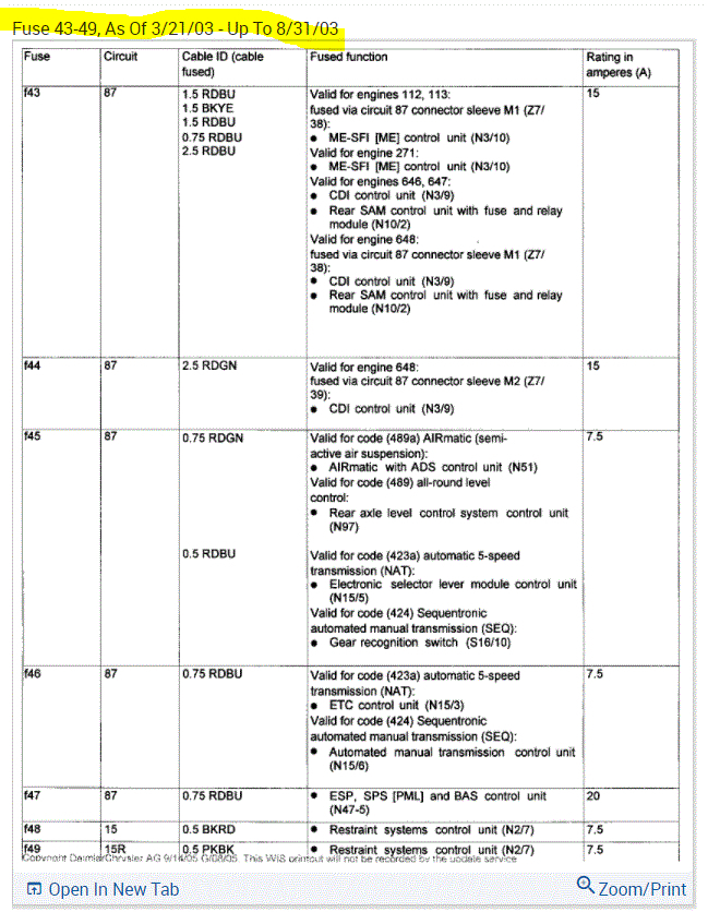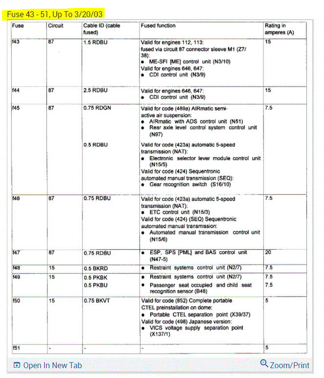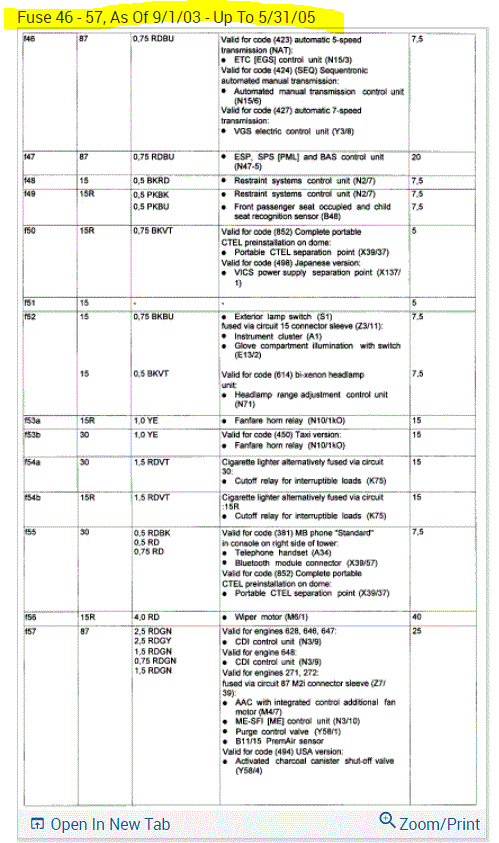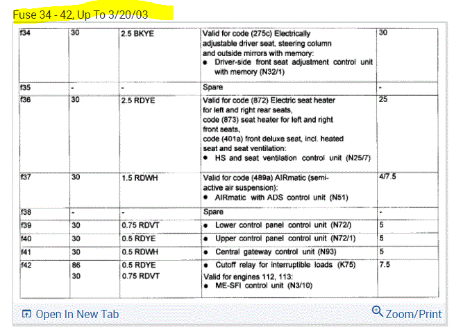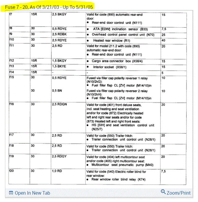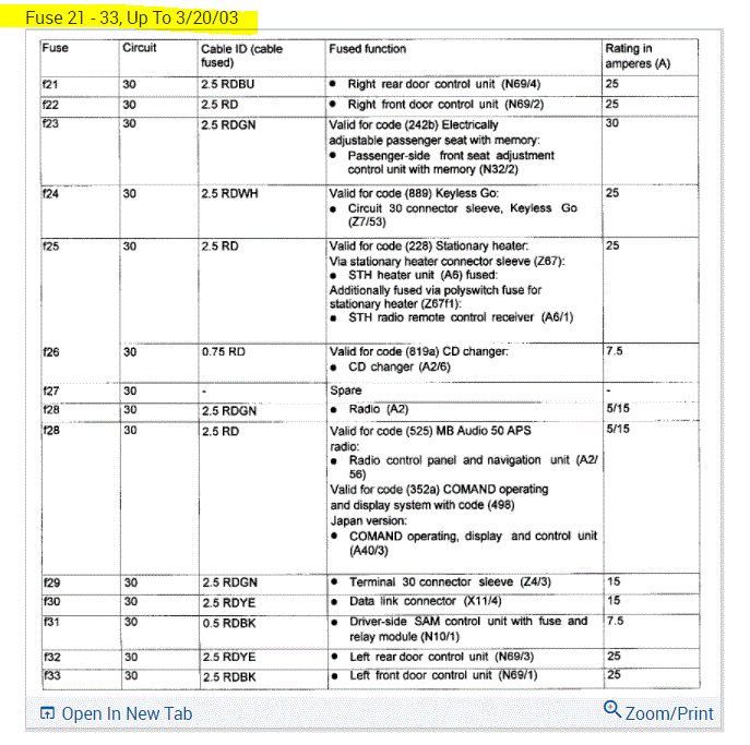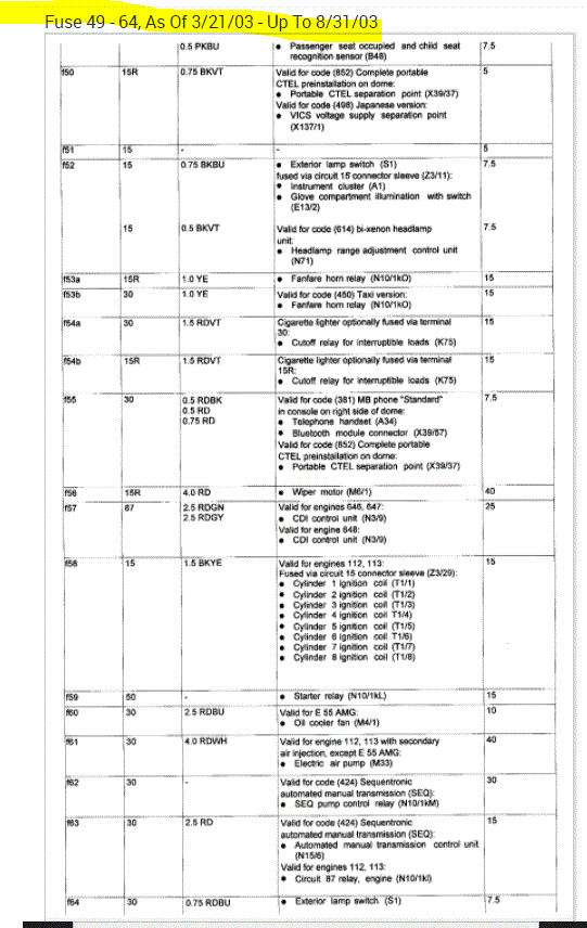 If you look at the pics below, they provide the fuse information you requested.