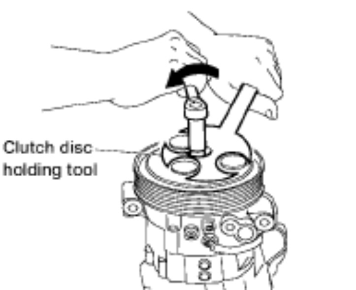 I am trying to remove the clutch cover bolt on the ac pump and it turns but does not loosen even when pulley and clutch are stationary , it feels like I am turning the pump , is there a special tool to keep it from turning so the bolt can be removed?