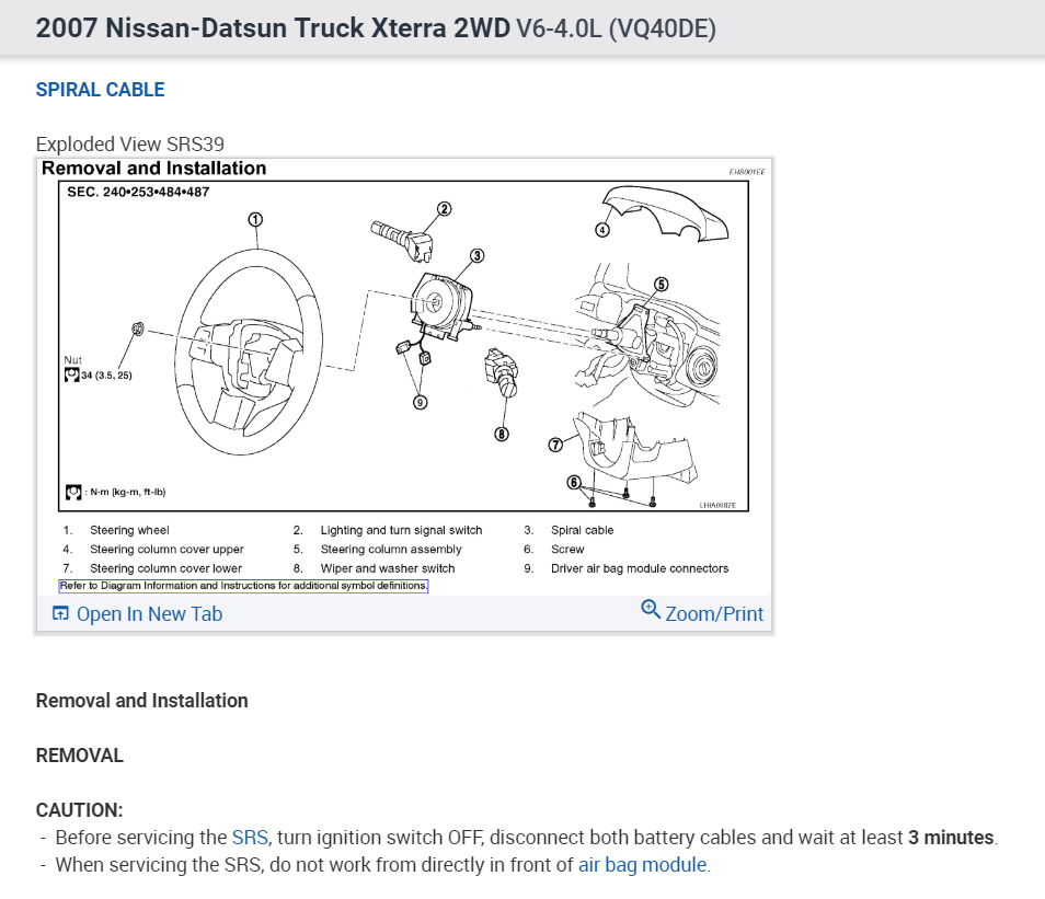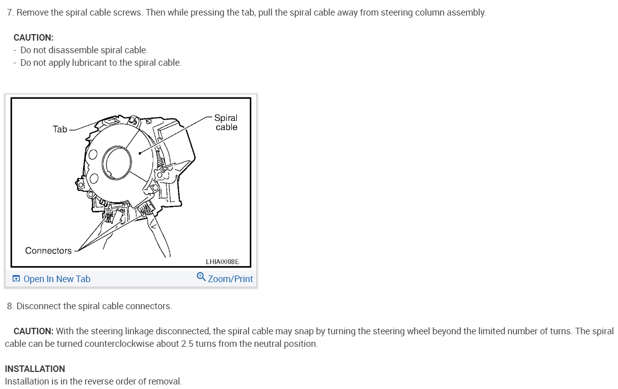 The cruise control will not turn on. When the problem first started you could only turn the cruise on (not set, but turn on), when turn the steering wheel 90 degrees or more to the left. Since then it will not turn on at all. I've replaced the brake switch with no change. I believe it's the clock spring, but would like to be certain before tearing apart and spending the money to buy a clock spring.