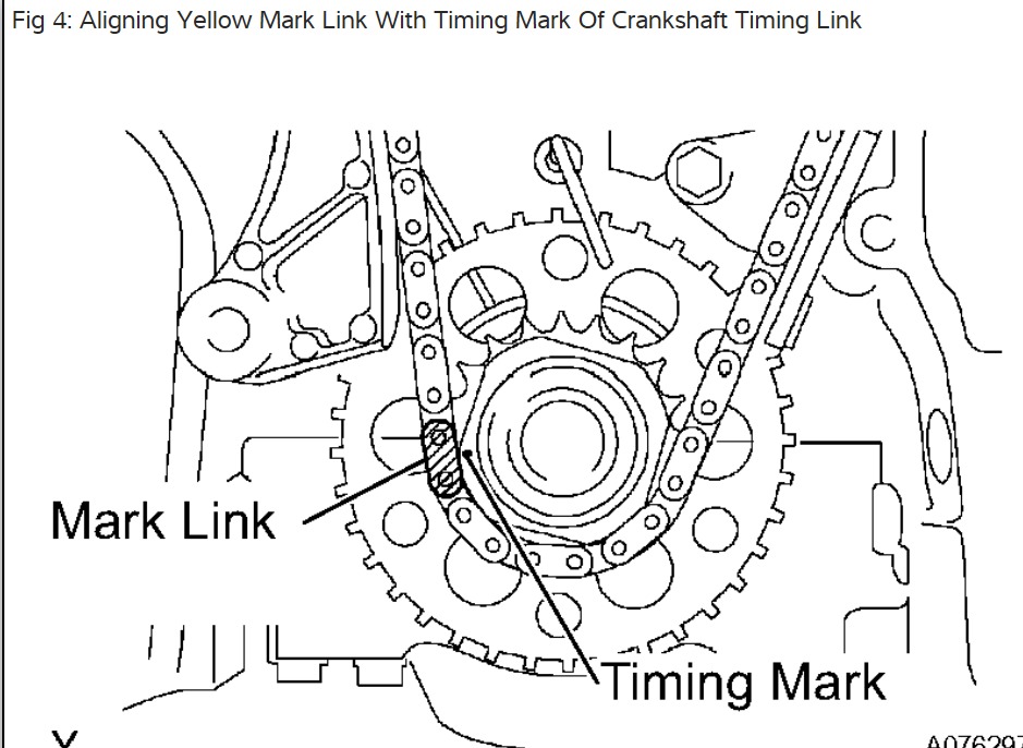 yellow marks to crank sprocket orange marks to cam sprockets. However, this may be a valve bender if out of time on cam. I am assuming you alredy know the rest of the stuff as it is to much to copy here so get a manual or rent one here for a week.