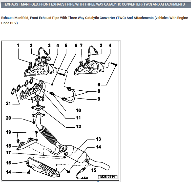 On this vehicle the flex pipe and the catalytic converter are one unit and needs to be replaced together (see the diagram below for reference).