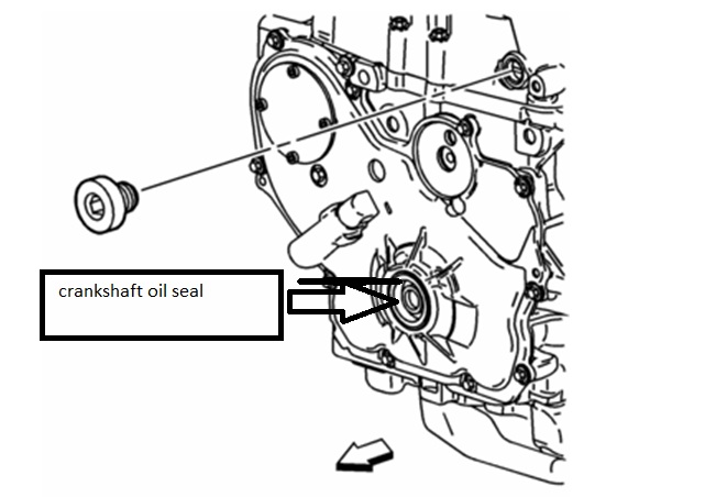 where is the front crank seal located at?