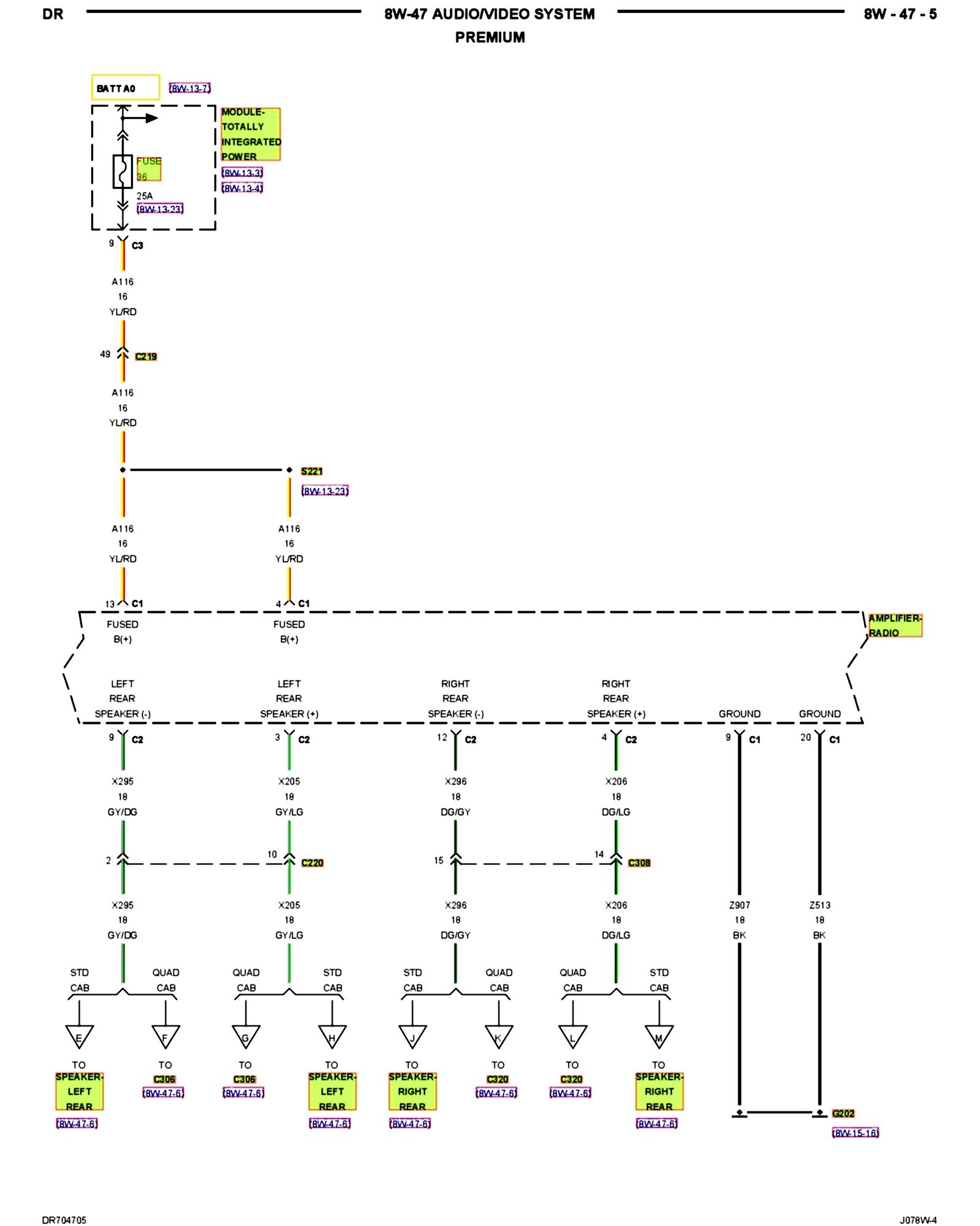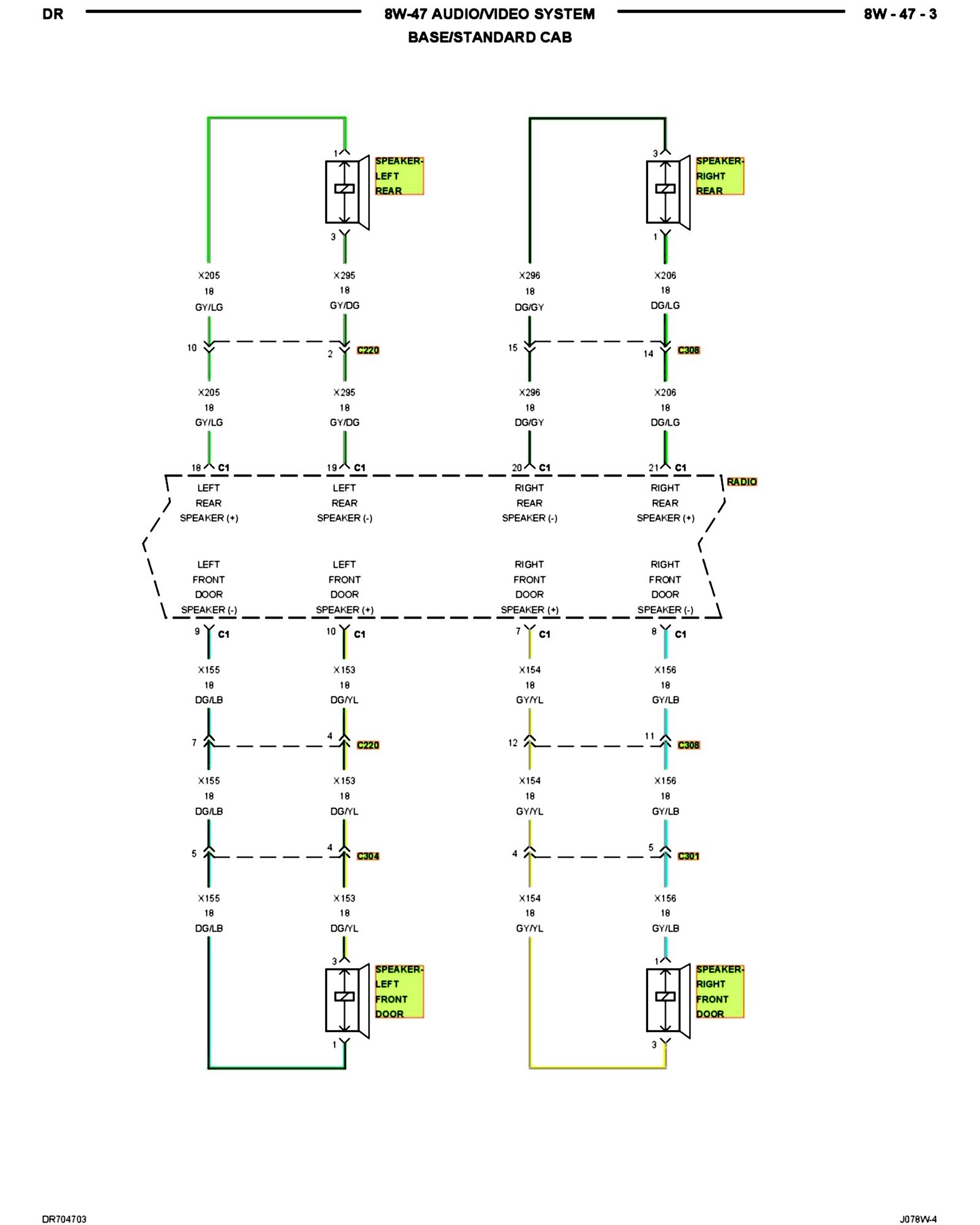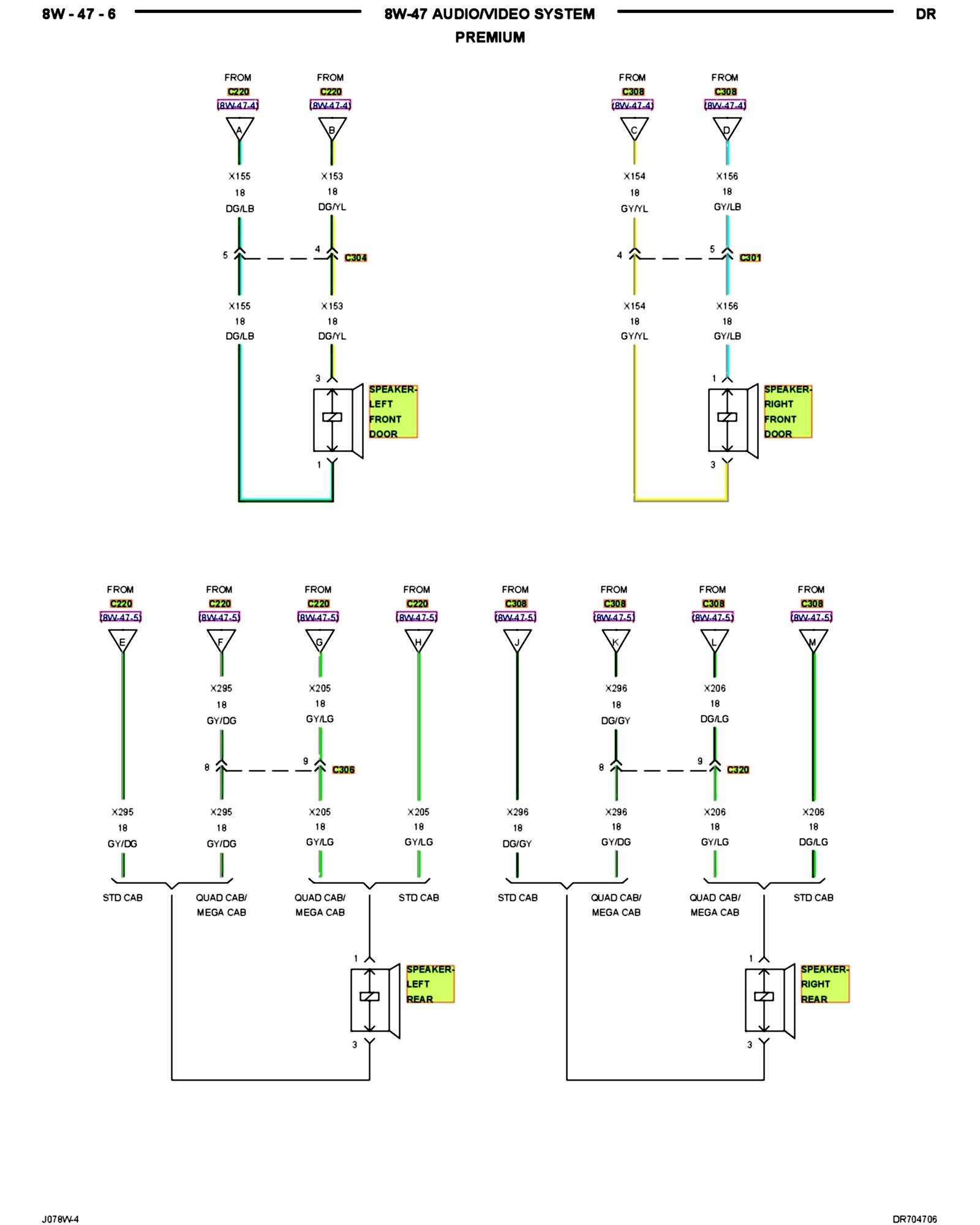 I have the truck listed above 1500 V8 4.7 that all of a sudden all of the speakers stop working. I would like to maybe get a wiring diagram for it because maybe they all get power from one source if they all went out at the same time. I already checked the fuses but they are all good.