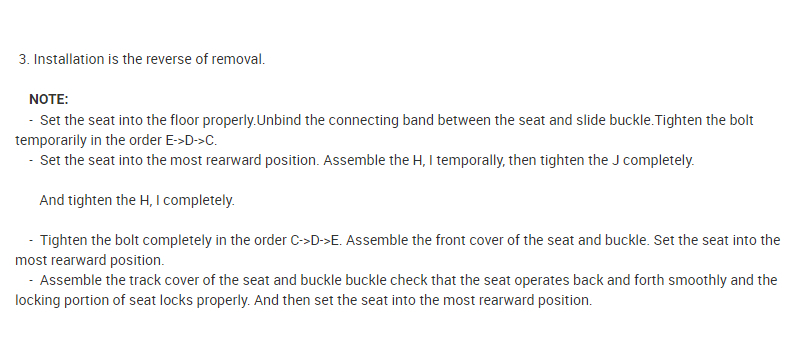The middle row seats can be removed by taking off the mounting bolts that goes to the floor panel and disconnecting any sensors.