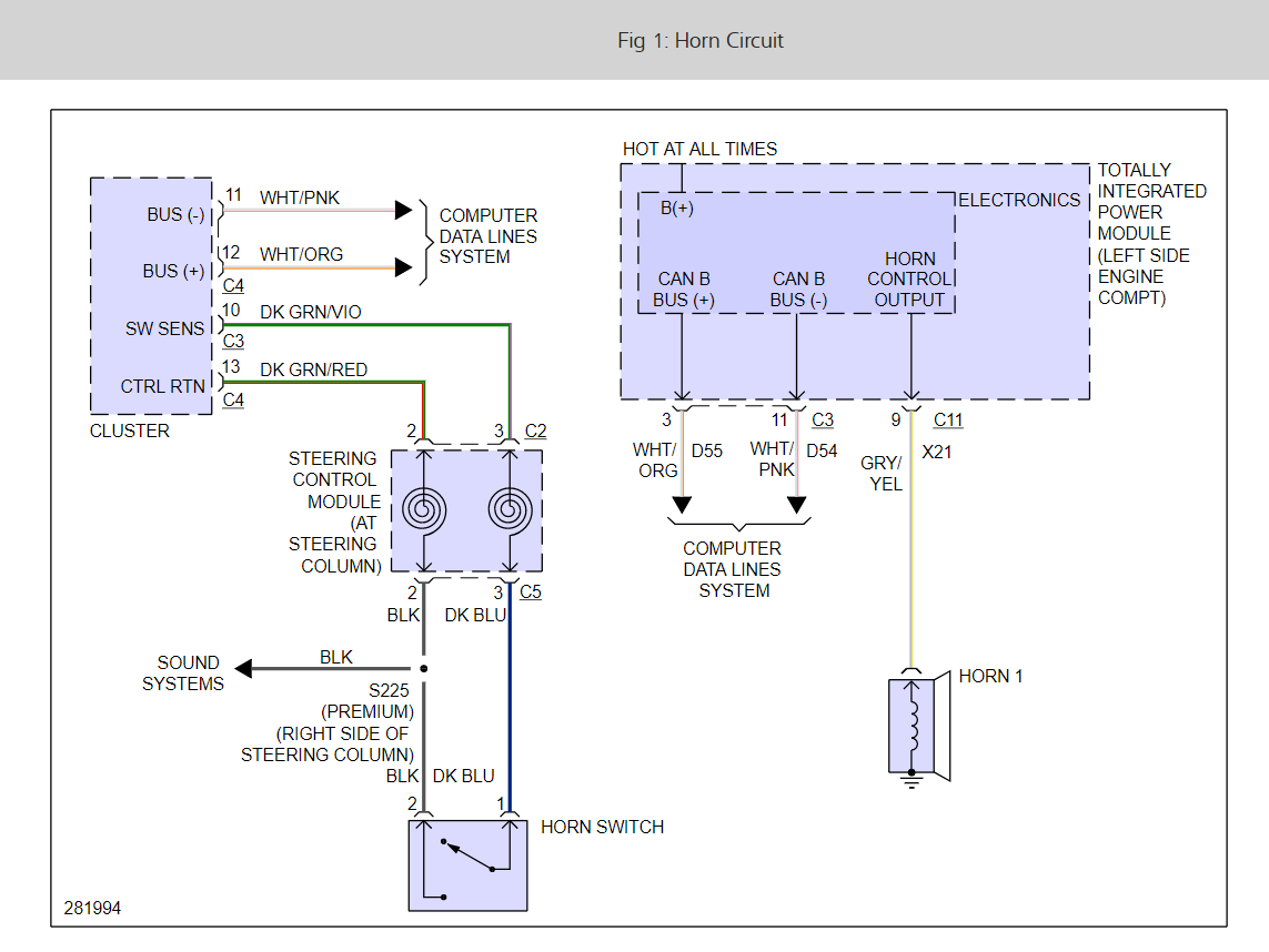 Yes there is a fuse for the horn in the TIPM here are three guides that will help you run some simple tests to find out what the problem is. Check for power at the horn first in case the horn itself is bad which is common.
