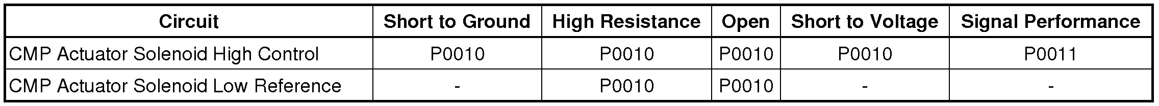 - Camshaft Position (CMP) Actuator Solenoid Control Circuit