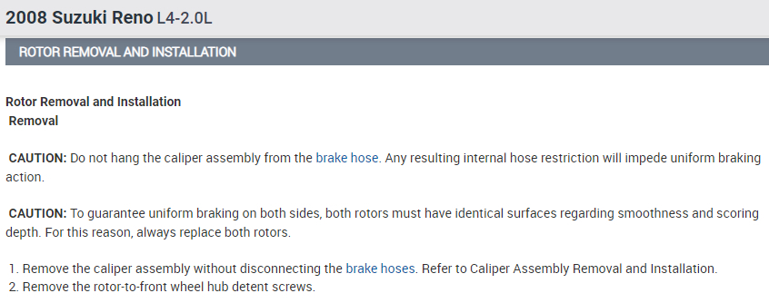 CAUTION: To guarantee uniform braking on both sides, both rotors must have identical surfaces regarding smoothness and scoring depth. For this reason, always replace both rotors.