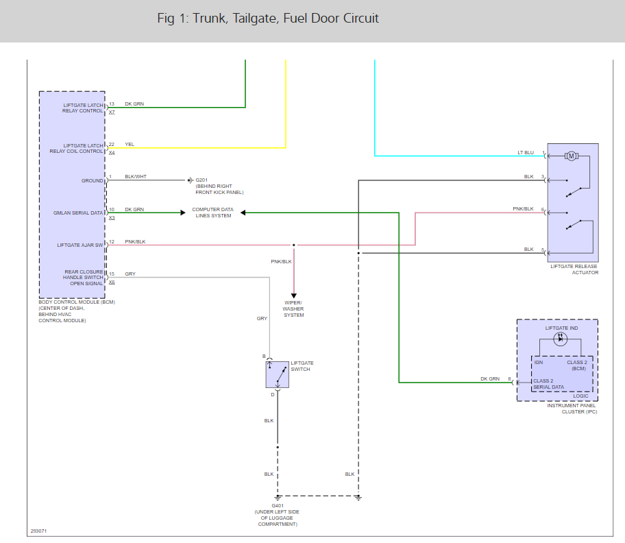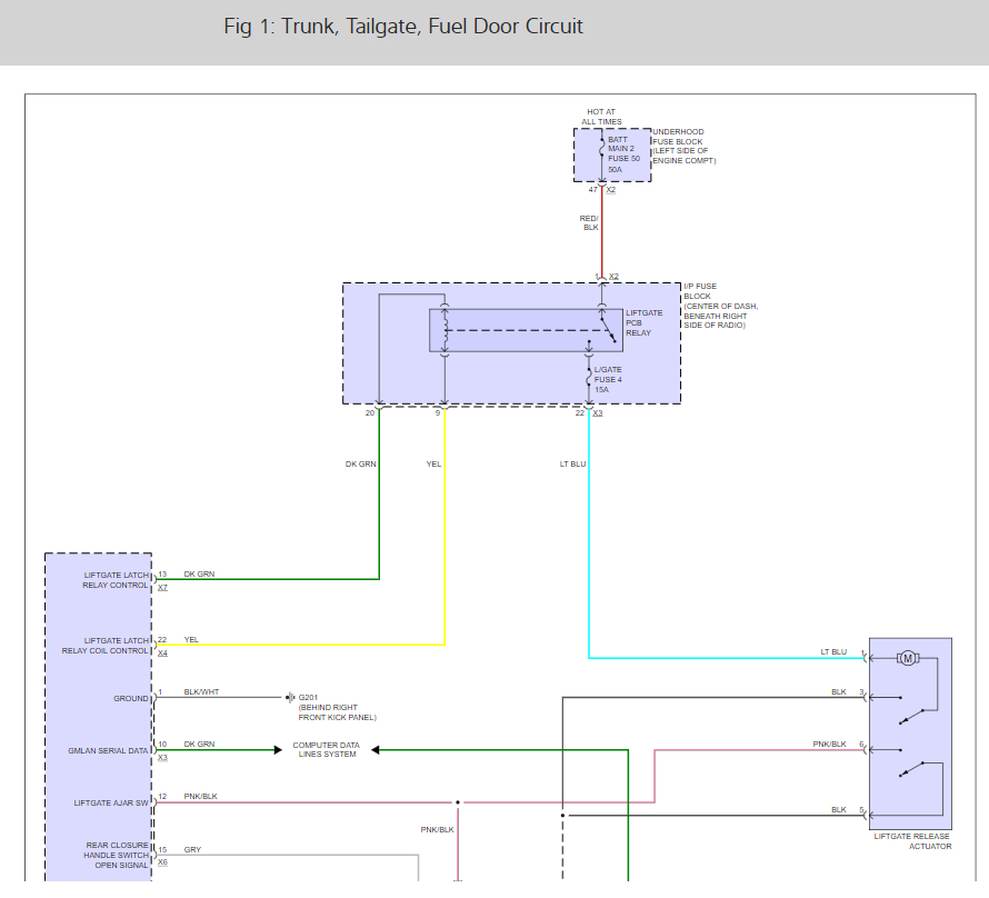 There is a left gate control relay or fuse #7 that sounds like it is out. To be sure lets run down this guide that will help you test it. Also, the location of the relay with the door lock and lift gate wiring diagrams so you can see how the system works as well.
