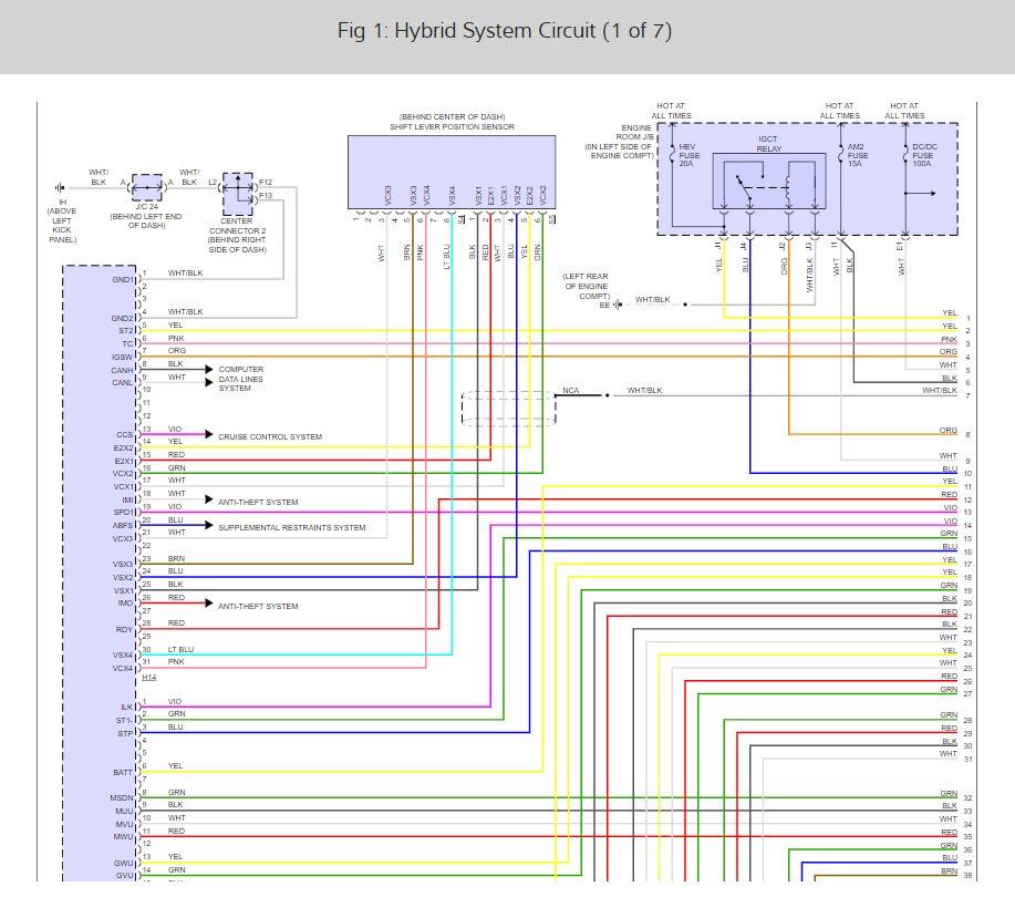 As you know the starter is the hybrid motor which is controlled by the computer so you might have a fuse out. We should also run the codes to see what comes up here is are two guide to help us get started. I also included the engine and hybrid wiring diagrams below so you can see how the system works and to see which fuses you should check.