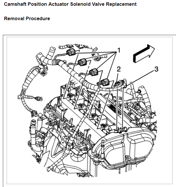 1. Ignition OFF, disconnect the CMP actuator solenoid harness connector at the CMP actuator solenoid.