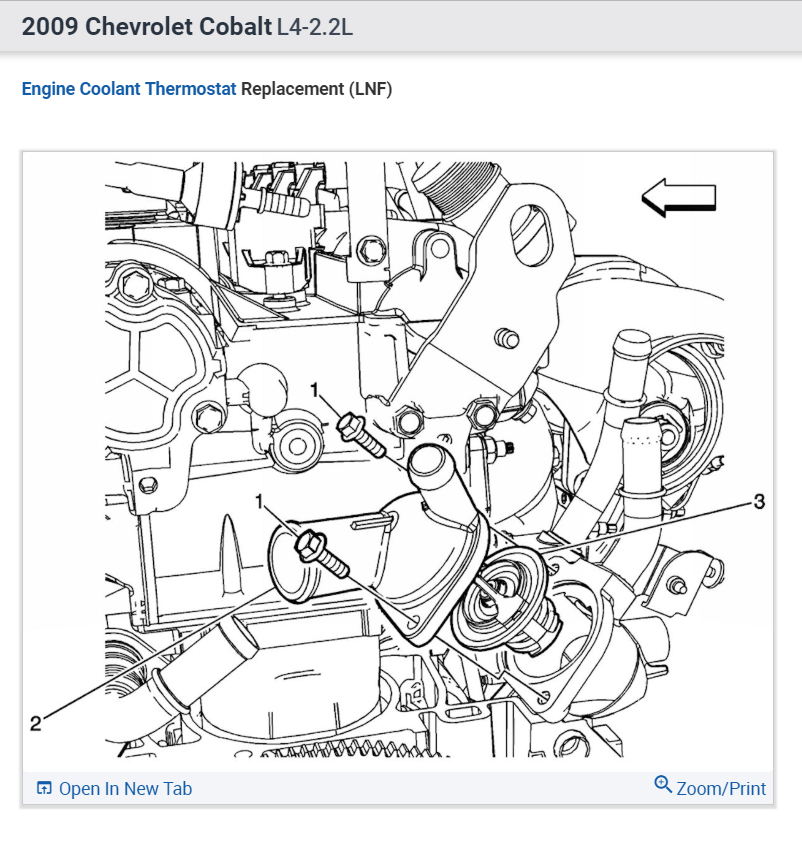 Fig. Location of thermostat cover bolts for removal of the thermostat and thermostat cover O-ring seal-2.2L & 2.4L engines