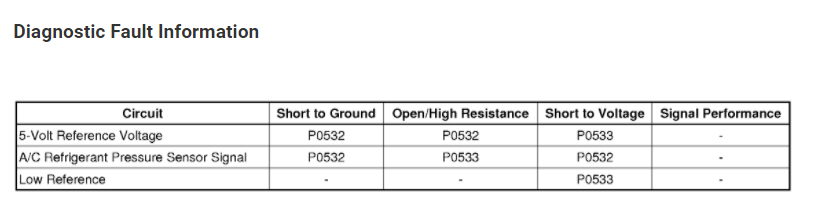 The code P0532 is for air conditioning A/C refrigerant pressure sensor circuit low voltage. I've attached picture diagnostic steps below for your vehicle relating to this code. Hope this helps and thanks for using 2CarPros.
