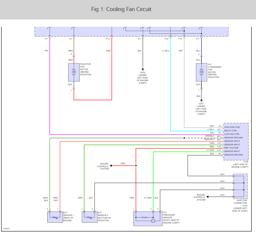 Here are the cooling fan relay locations as well and the wiring daigrams