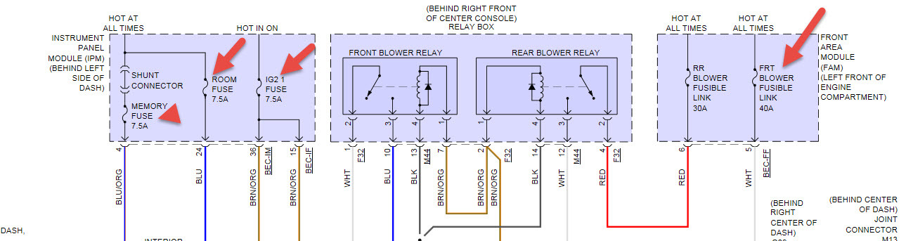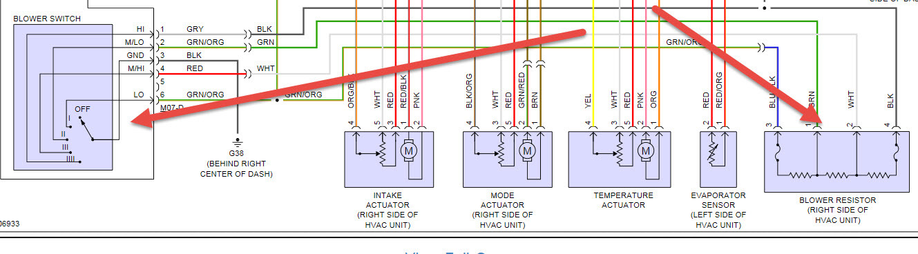 check fuse s in pic first then check to see if power is going to resistor. if it is then it may be a bad resistor. Of course if this is auto temp control where you set the tem p then what I'm sending is wrong and unit must be scanned. for codes.