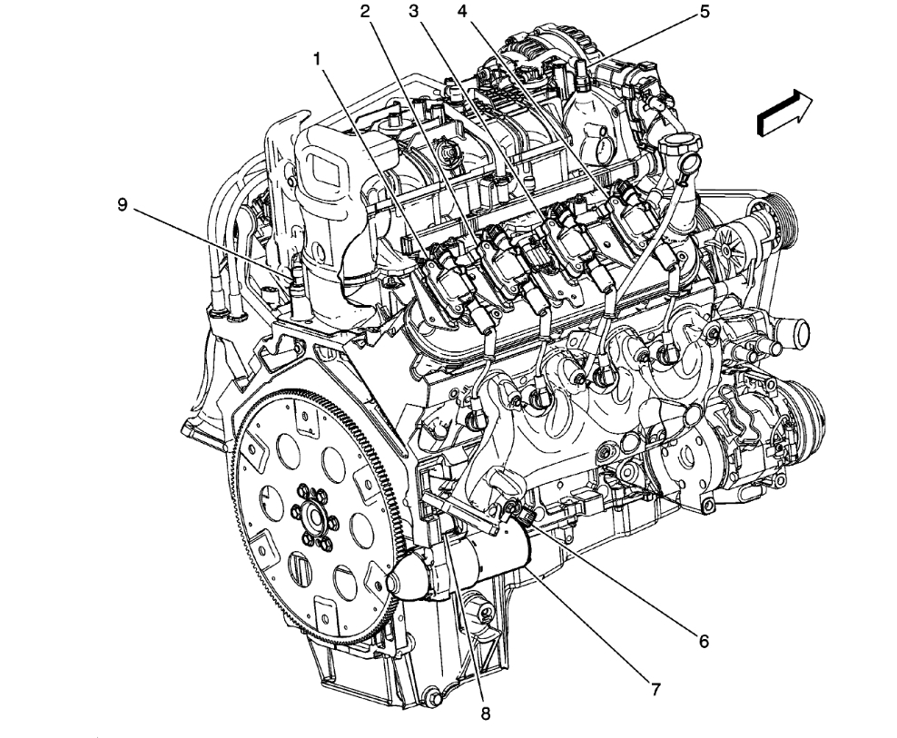 - 5.0L Vin M & 5.7L Vin R is on top left rear of engine, near distributor