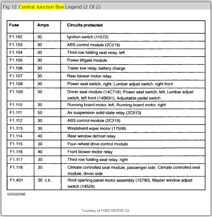 Interior lights and running board light along with power windows stopped working. Traced to fuse #14 replaced and it blows right away. Sunroof is not working either, stuck open position.