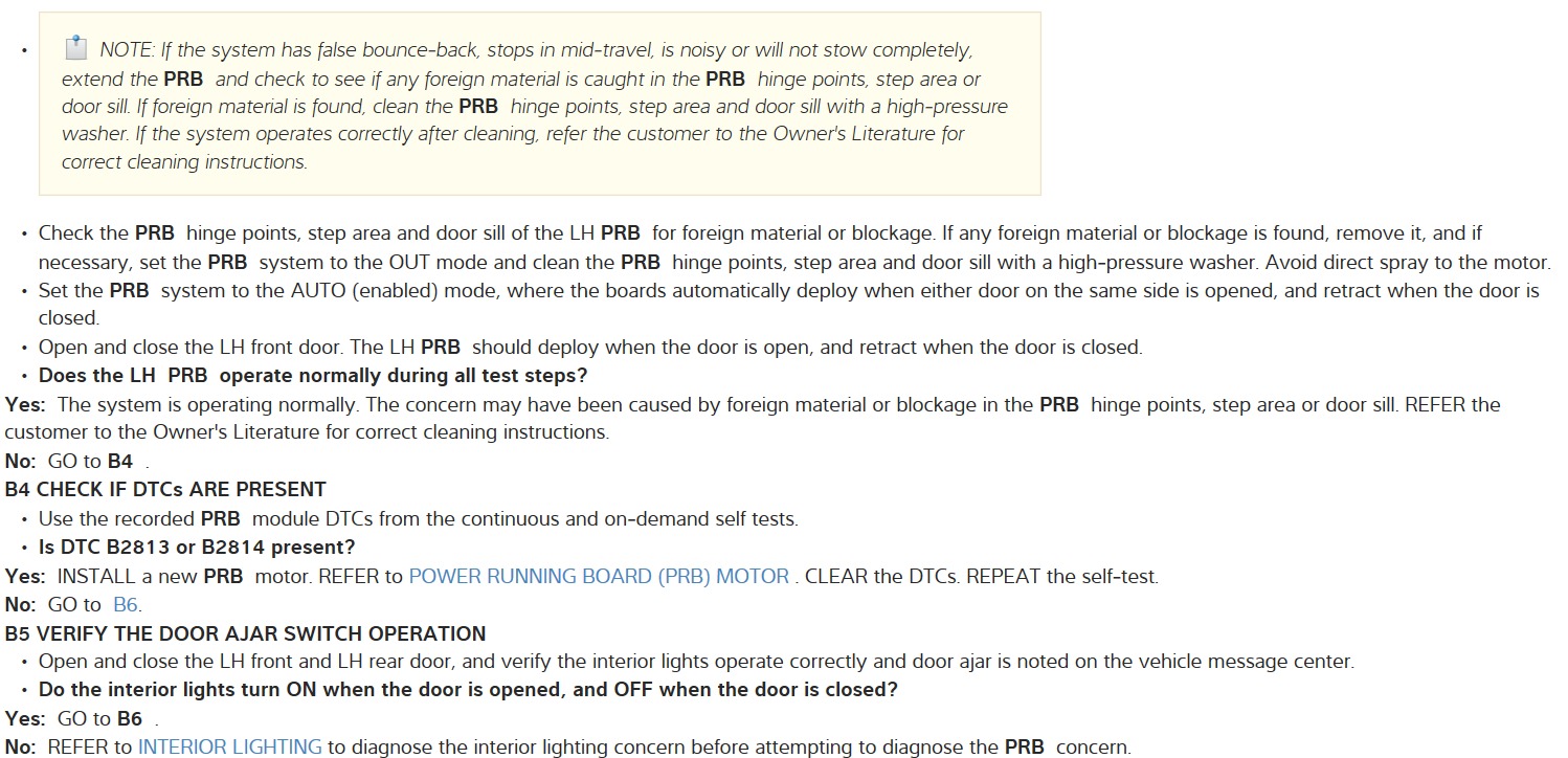 This is a customer's vehicle; for most of this past year he's been having issues with the drivers side running board. It will extend out going down the road and stay that way for no reason then arbitrarily retract back. It sometimes comes out when the door is opened and other times not. It will work sometimes like it's supposed to and other times won't work at all, there is no continuity to the problem. I haven't checked it yet because I have no manual or schematics regarding the electrical system and don't want to disassemble something I may have trouble reassembling. I take care of his truck fleet and he's adamant about wanting me to repair it, he refuses to take it to the dealer or other independent shops. Can you supply me with a starting point, any information you may have about this type of problem; I've spent two days reading all the tech blogs and it all starts morphing together into one big mess. Schematics, if you have them, would be a great help, thanks.