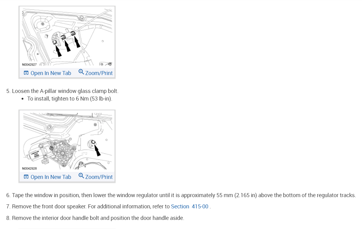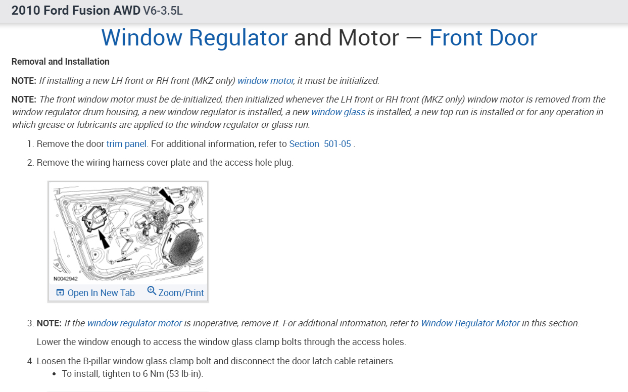 NOTE: Initialization is required to learn both the full UP and full DOWN positions of the glass as it travels through the glass channel. Once initialized, obstacle detection is enabled. This procedure is only required for Fusion and Milan (LH front only) or MKZ (LH and RH front) window motors.