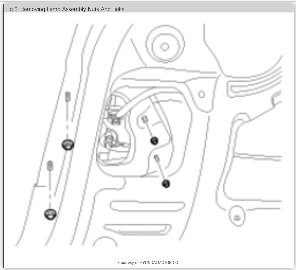 I have a 2010 Hyundai Elantra Touring. The right rear side marker bulb is burned out. My owner's manual shows how to remove the rear light assembly. I can see the inside of the car where the side marker lens is fastened to the body. I don't know what to do to release the lens from the body so that I can change the light bulb. Can you help?