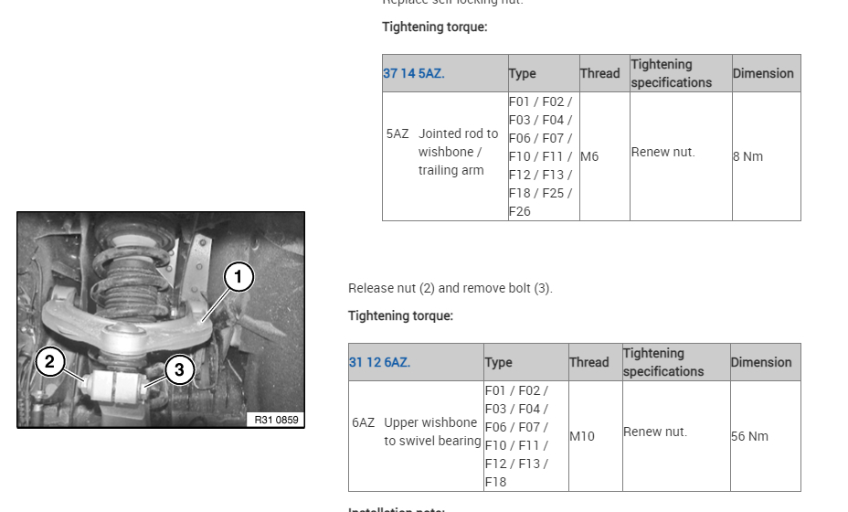 Thanks in advance for your expertise. After rebuilding the front left/right struts- (reused springs only), I realize a refresh of additional suspension components is needed. Can you please provide the work instructions, torque values, any one-use bolts and pro-tips to replace the front upper controls arms? The best I can tell is I have to access the fasteners by removing some components underneath the hood.