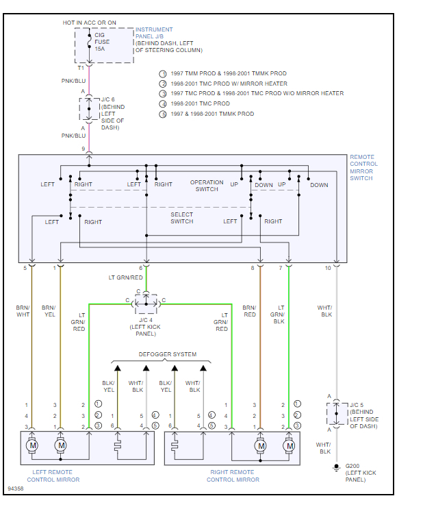 I have the car listed above XLE model, USA made. I need to get the wiring diagram for the left side power mirror non-heated. The car I got was damaged and the wiring harness was gone on the driver side. There is some loose colored wires in there and I tried hooking up the mirror and it seems like I got it to move in one direction but one I did trial and error I kept blowing fuses. I would appreciate anyone who could help with a wiring diagram so I could do it properly. Thank you in advance.