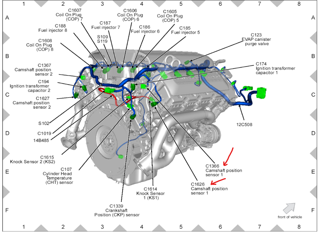 Here is the sensor location but I can tell you it probably won't help. You get the dreaded camshaft codes when the timing chain, guides, oil control valve or camshaft actuators are worn out and need replacement. Also, make sure the engine oil is clean and full. This can cause the code as well. The sensor locations are at the rear of the cylinder head. If you give me the code number, I can tell you which one to replace. Check out the images (below). Please let us know what happens.