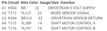 Well looking at the book and build information your truck can have two different encoder motors. One has the integrated sensor and the other is the bolt on sensor. I would verify which one you have. The connector looks to be the same on both so they might be interchangeable. The pinouts and wiring are in the pictures below. Testing with a voltmeter should tell you if the motor or the sensor is the problem. The only wire you really need to check is the mode sensor signal. It should show a different resistance for each mode the case shifts into. I suspect it will show nothing when shifted into low.