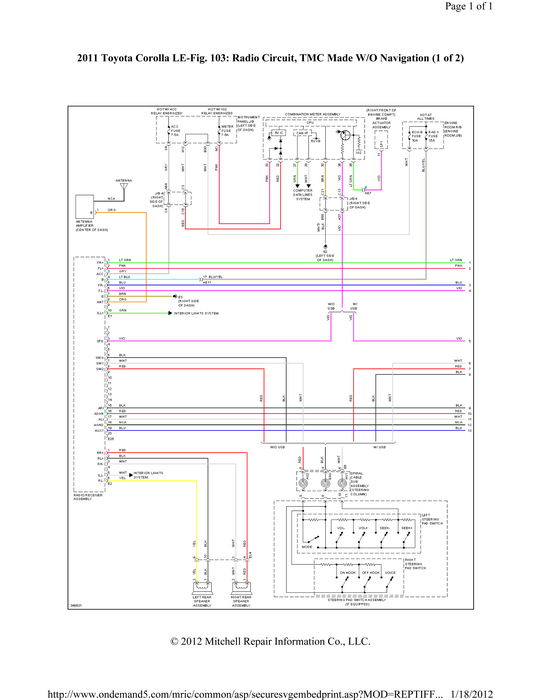 can you please send me wireing diagram for corolla 2011 LE for stock headunit iam upgradeing my sound system and also adding amp so i want to know which wire goes to headunit and what color.