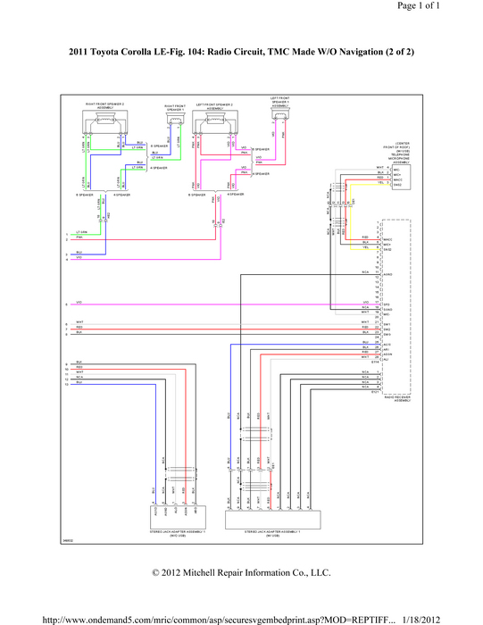 can you please send me wiring diagram for corolla 2011 LE for stock head unit i am upgrading my sound system and also adding amp so i want to know color coding front +ve and -ve rear +ve or -ve. I think you guys understand what i mean to say