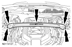2. If equipped, remove the 4 nuts and the strut tower cross brace.