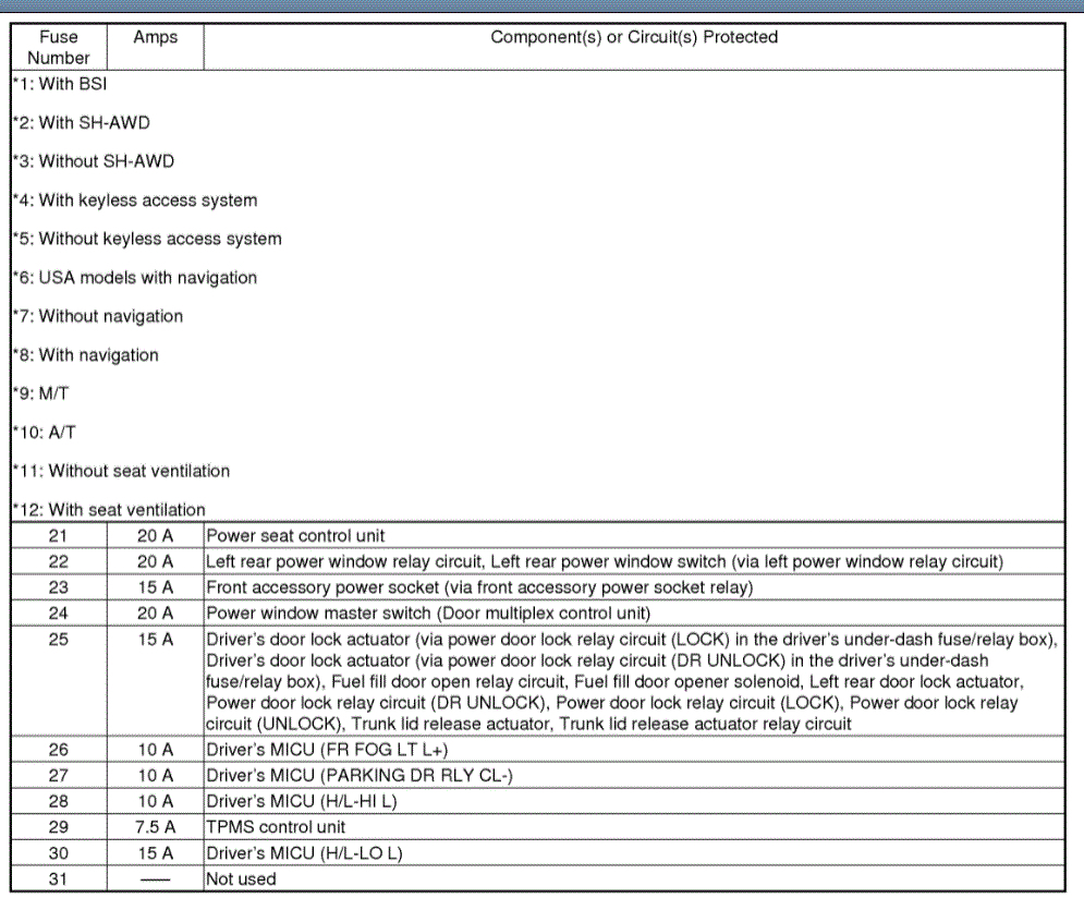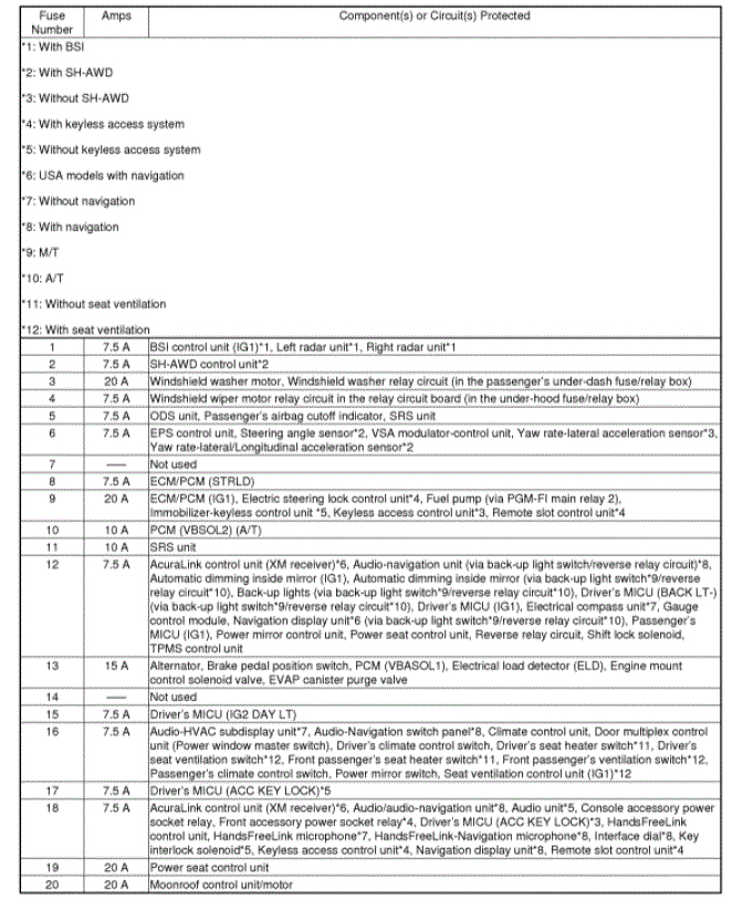If you look below, I attached the fuse box information and legends related to each.