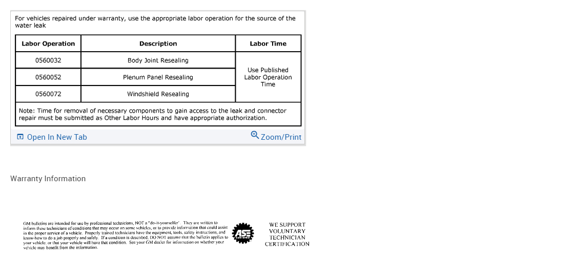 You can use a water hose over the vehicle with someone inside with a flashlight to help find any water leaks, the TSBs do also mention resealing certain Body, Plenum and Windshield so the issue doesn't happen again. Hopefully this helps.