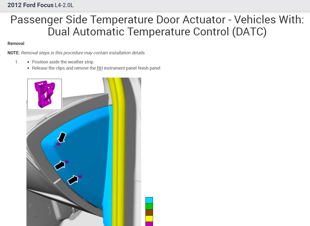 The passengers side blend door actuator is by the glove box which must be removed to access the actuator. Here are the instructions on how to change it out in the images below. Check out the images (below). Please let us know what happens.