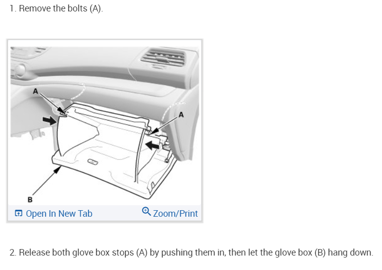 Here is a guide to help you replace the air cabin filter and diagrams below to show you how to remove the glove box door.