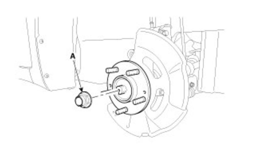 3. Remove the brake caliper mounting bolts , and then hold the brake caliper assembly (A) with wire.