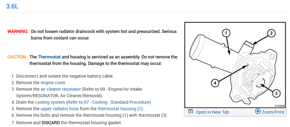On the 3.6 there is a bleeder on the thermostat housing. You can see it in the attached and in the first picture you posted. The normal process is to open that with a cold engine, add coolant until it starts to run out of that, then close it and continue adding coolant until the bottle reads full cold. Now start the engine and let it run until the thermostat opens. Shut it off and let it cool down. As it cools off watch the level and add coolant to keep it at full cold. Repeat the start and run process a second time. If the coolant hits full hot you are good.
