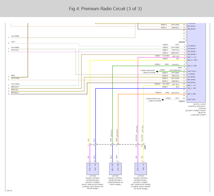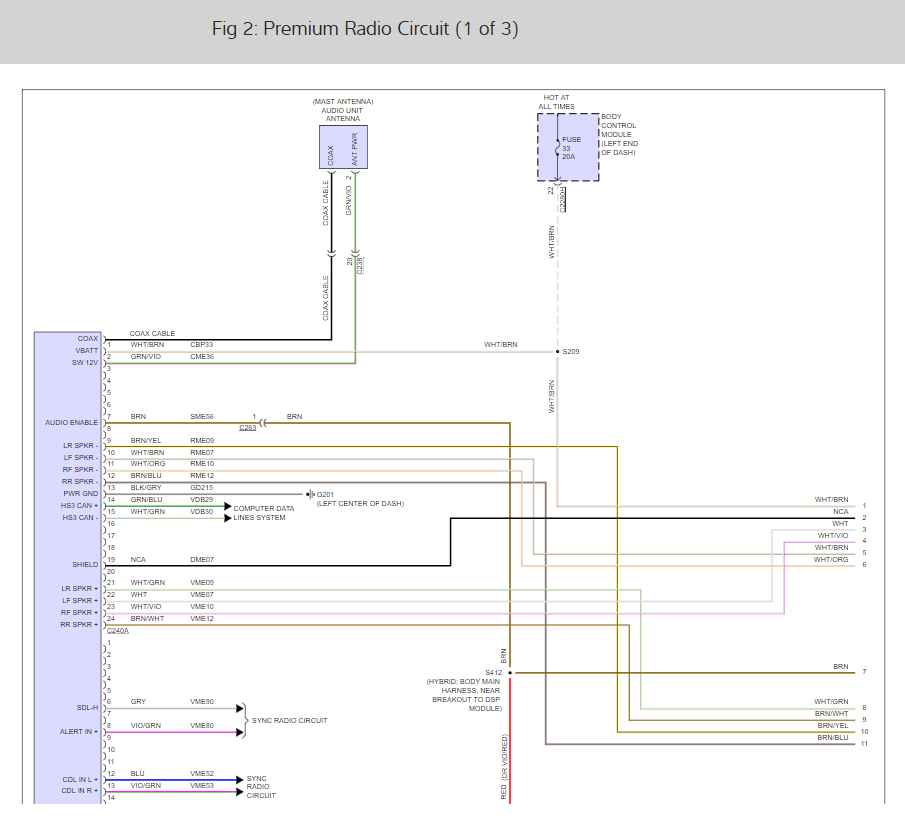 I'm installing an audio adapter for sub woofers and need a wiring diagram for a 2014 ford fusion to see what color wires go to the speakers so I can tap into them for the adapter. It's the basic sync 3-4" lcd screen with 6 speakers