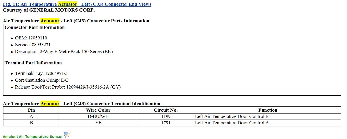 (3) Air Temperature Actuator (C67), Air Temperature Actuator - Right (CJ3)