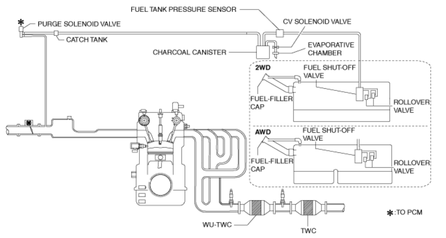 Sure, here is how the EVAP system works and illustrations to help with the explanation. Use 2CarPros anytime, we are here to help. Please tell a friend.