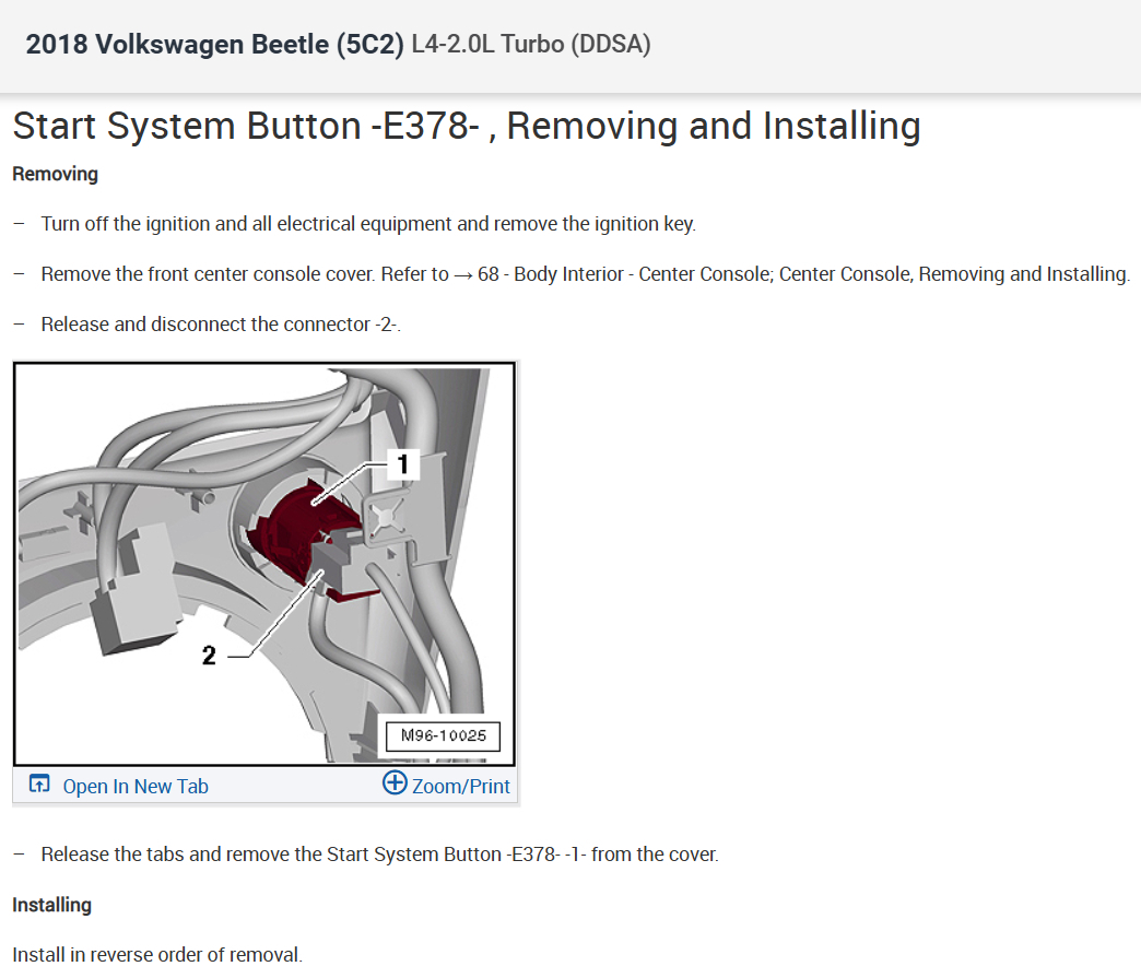 - OBD Access – Unable to use a scan tool since I can’t turn on Power ACC to enable access because the push to start button is dead.