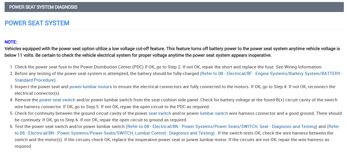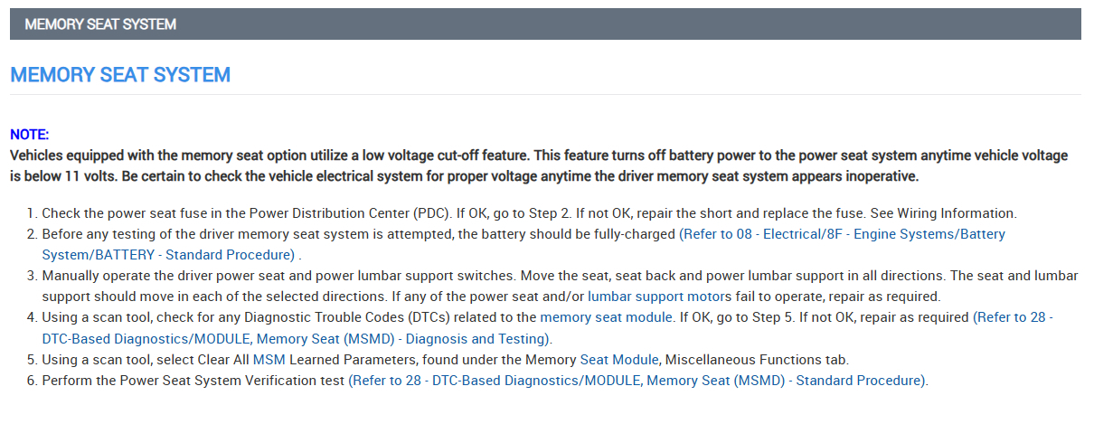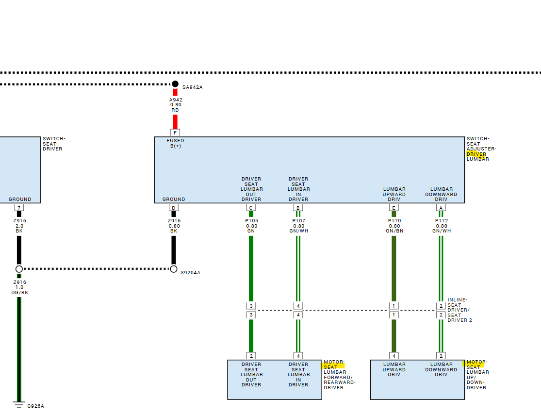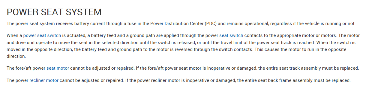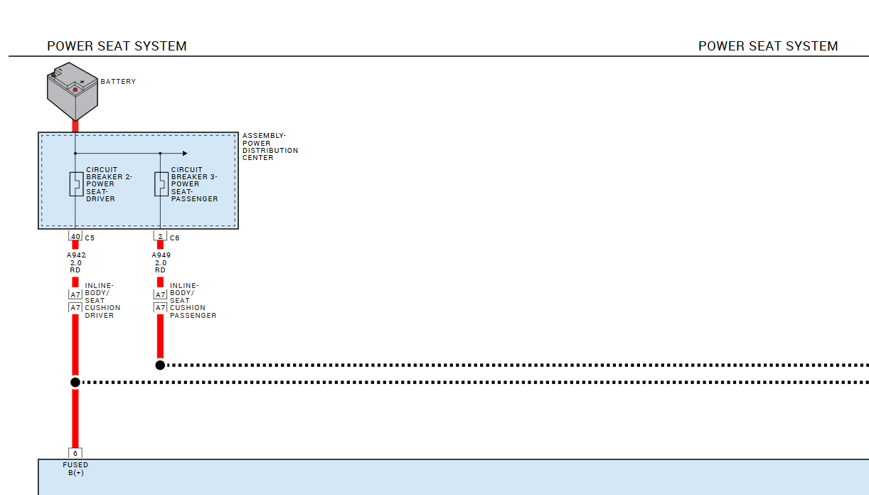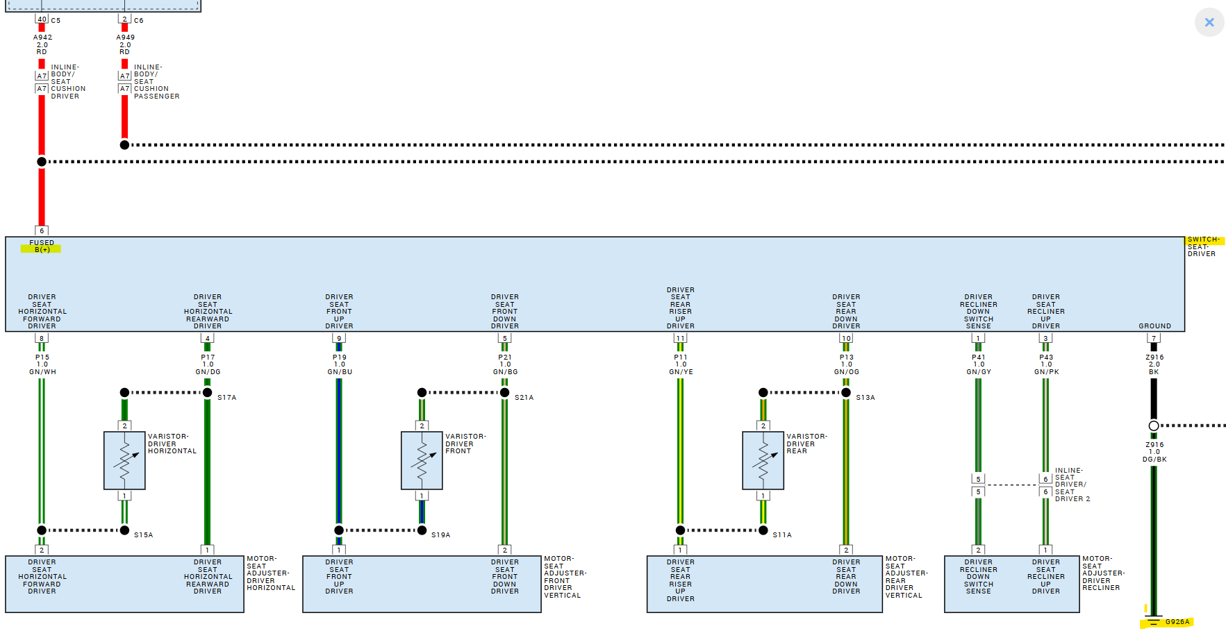 Yes, we have those as well, although the seat forward and reverse and lumbar support are on circuit breakers and not fuses, but also notice in diagram 6 the power seat operations, they will switch off with voltage below 11volts, so corroded or bad connections will shut down the power seats, verify at least 12volts is getting to the switches, these diagrams are for the driver's seat switch and motors only, Ill post the memory section next but the memory section of power seats is powered off the same "Circuit Breaker 2- Power Seat-Driver". So most likely the issue with the seat memory is going to be tied in with whatever is affecting the seat's motors from movement.