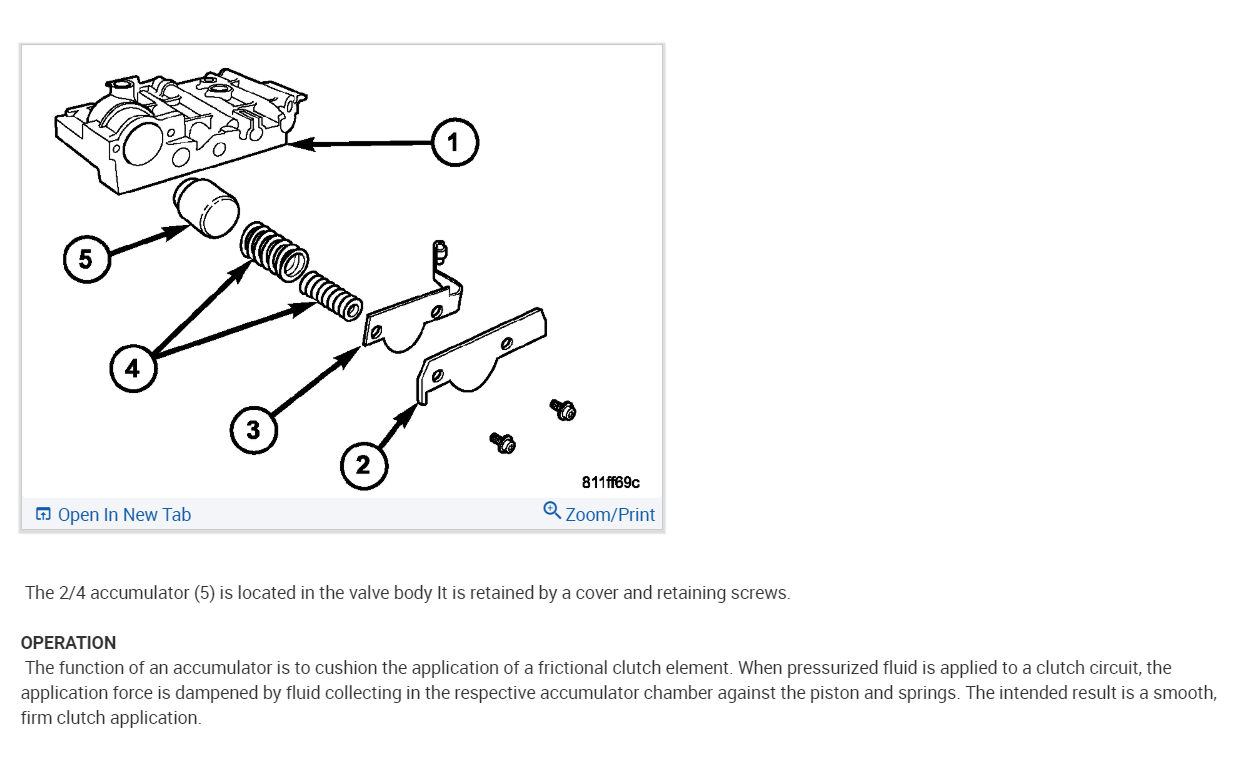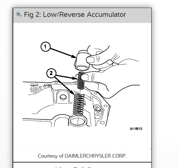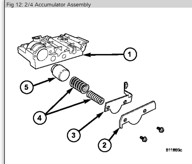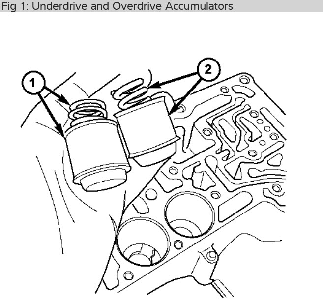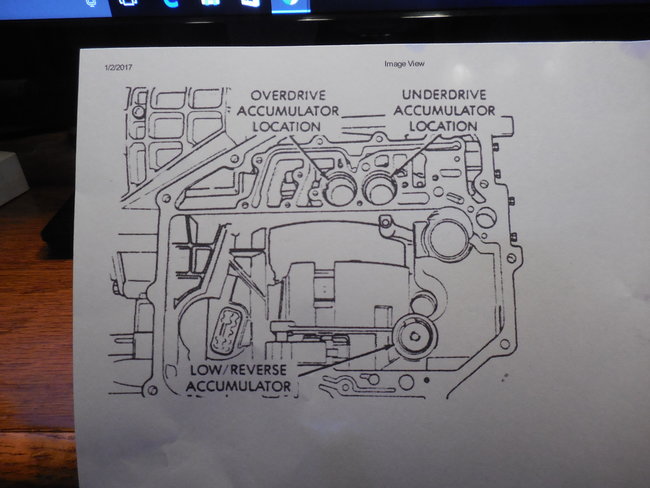 here are pictures of accumulators for over and under. you will see one has a heavier spring than other and other two accumulators have two in them along with the valve body instructions. Check out the diagrams (Below). Please let us know if you need anything else to get the problem fixed.