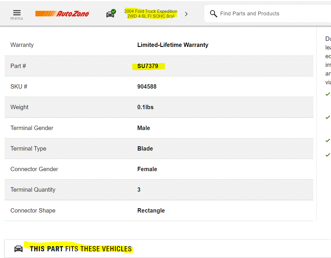 I went to the AutoZone website and typed in the info, and it came up as a part number SU7379. See attached pic.