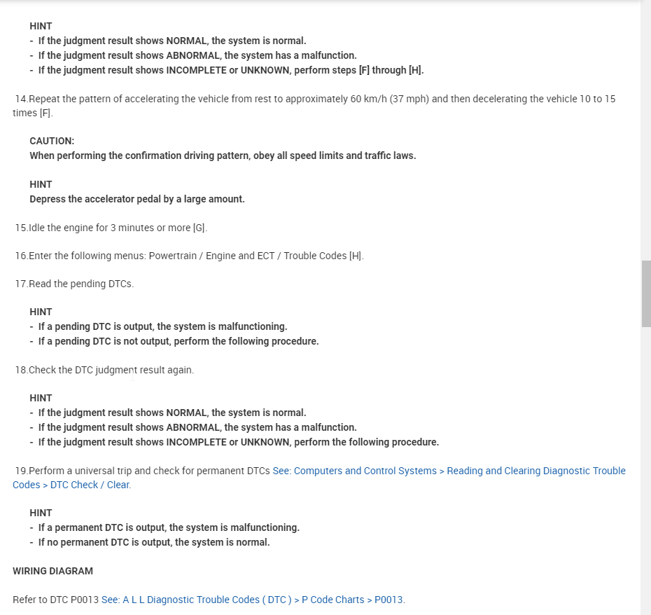 (d)Enter the following menus: Powertrain / Engine and ECT / Active Test / Control the VVT Linear (Bank 1), Control the VVT Linear (Bank 2), Control the VVT System (Bank 1), Control the VVT System (Bank 2), Control the VVT Exhaust Linear (Bank 1) or Control the VVT Exhaust Linear (Bank 2).