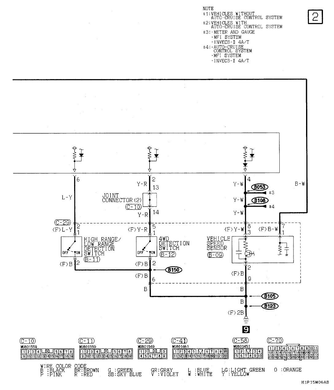 The "normal" positions for both the H/L and two wheel drive/four wheel drive forks is forward for two whee drive high.