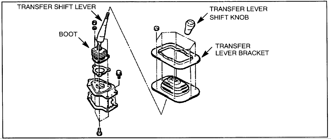 Remove the Tcase shift knob, then the center console. then the shift boot bracket (picture 1) Next you remove the four bolts that hold the shift to the case (picture 2).