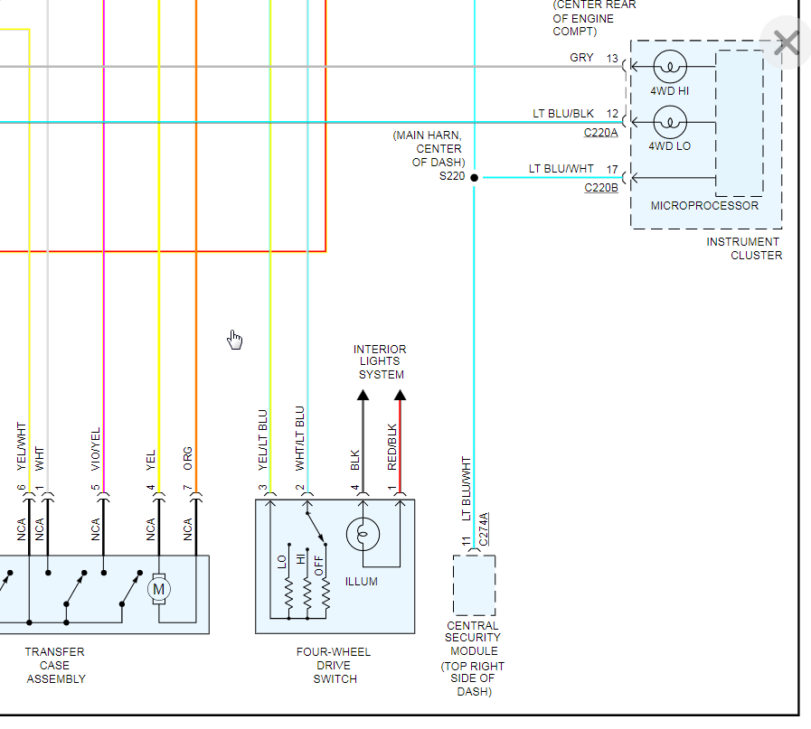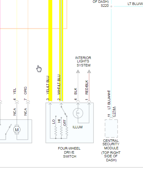 Suv listed above is an Eddie Bowers Edition. okay, someone borrowed that you when they returned it it feels like the four-wheel drive low is locked in. so I thought maybe the motor so I changed the motor that didn't seem to do nothing. well, then I went to the switch a little button 3 button pusher on there which says 4lo 4hi and all-wheel drive and I thought okay maybe that could be the problem, but before I replace it I wanted to test the wiring harness make sure that one of the wires didn't get burnt or nothing. however, I cannot find the wiring harness information online anywhere and I do out of the six wires have two hots when the key is on and three grounds and one all-time hot now here's the thing here's the real kicker when I hit the for high the light comes on on the dash. now when I hit the for low the light doesn't come on on the dash but the light on the button starts blinking about 20 times. so I'm not sure what the problem is. I don't know where to go is it the transfer case, is it a bad wire, is it the bad button, is it the computer. however I took a pair of pars and I tried to manually move the transfer case to see if it was locked in it does seem to move a little however according to the trigone there and according to what I think it actually says it's in 4 high. so is it possible that the button is making it going for high even though it doesn't tell it that it's for high, it's actually feeling like low. not really sure it's very odd and I have no idea where to go next. so a wiring diagram would help or somebody actually has had this freaked up sideways problem that can help me out and tell me what they did to fix there's.