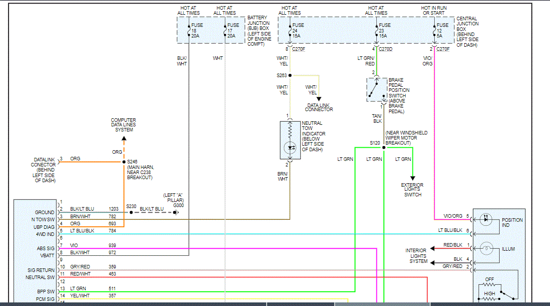 I want to know what each wire does that clips into the 4x4 button on the dash.